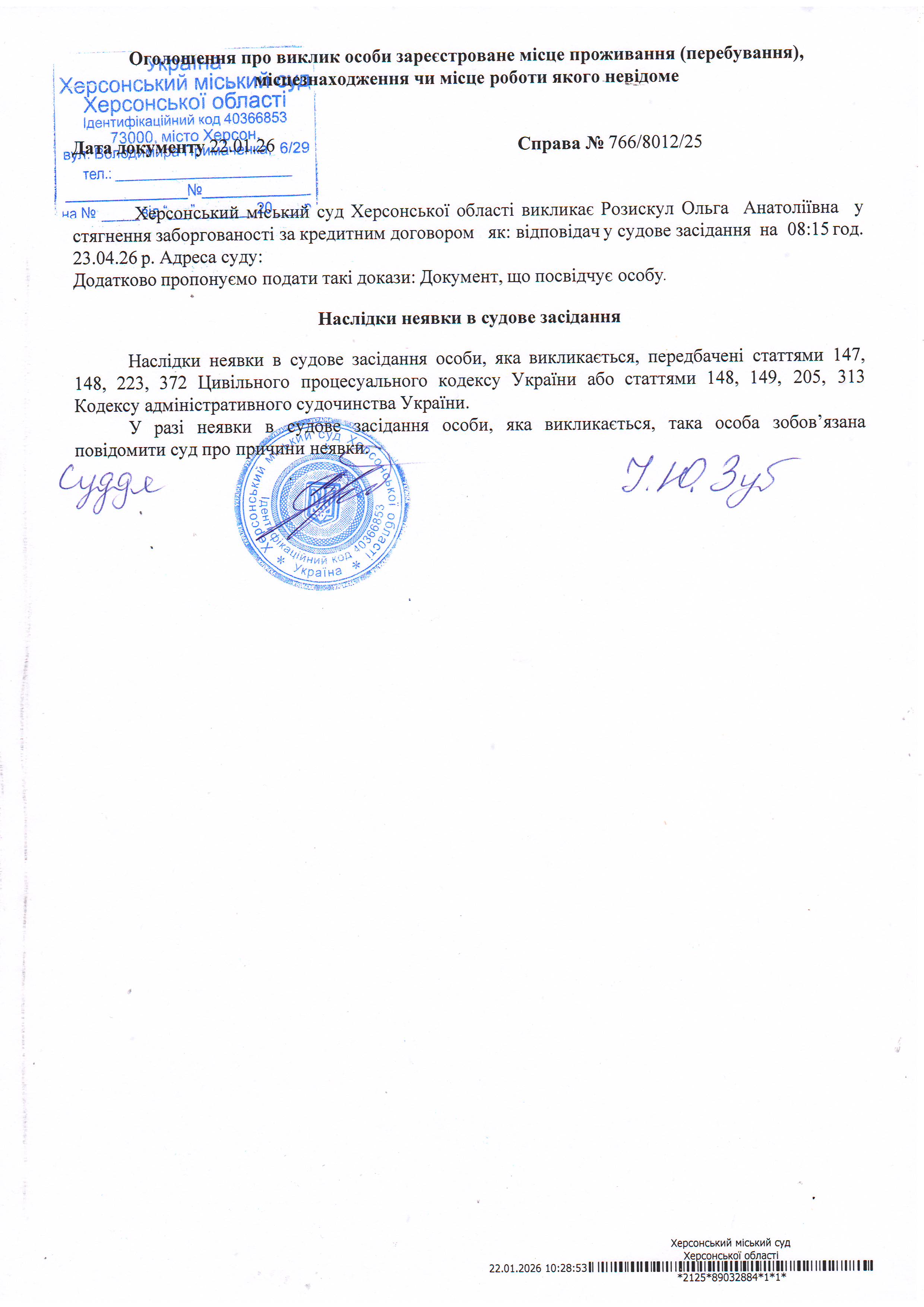 ОГОЛОШЕННЯ ПРО ВИКЛИК ДО СУДУ