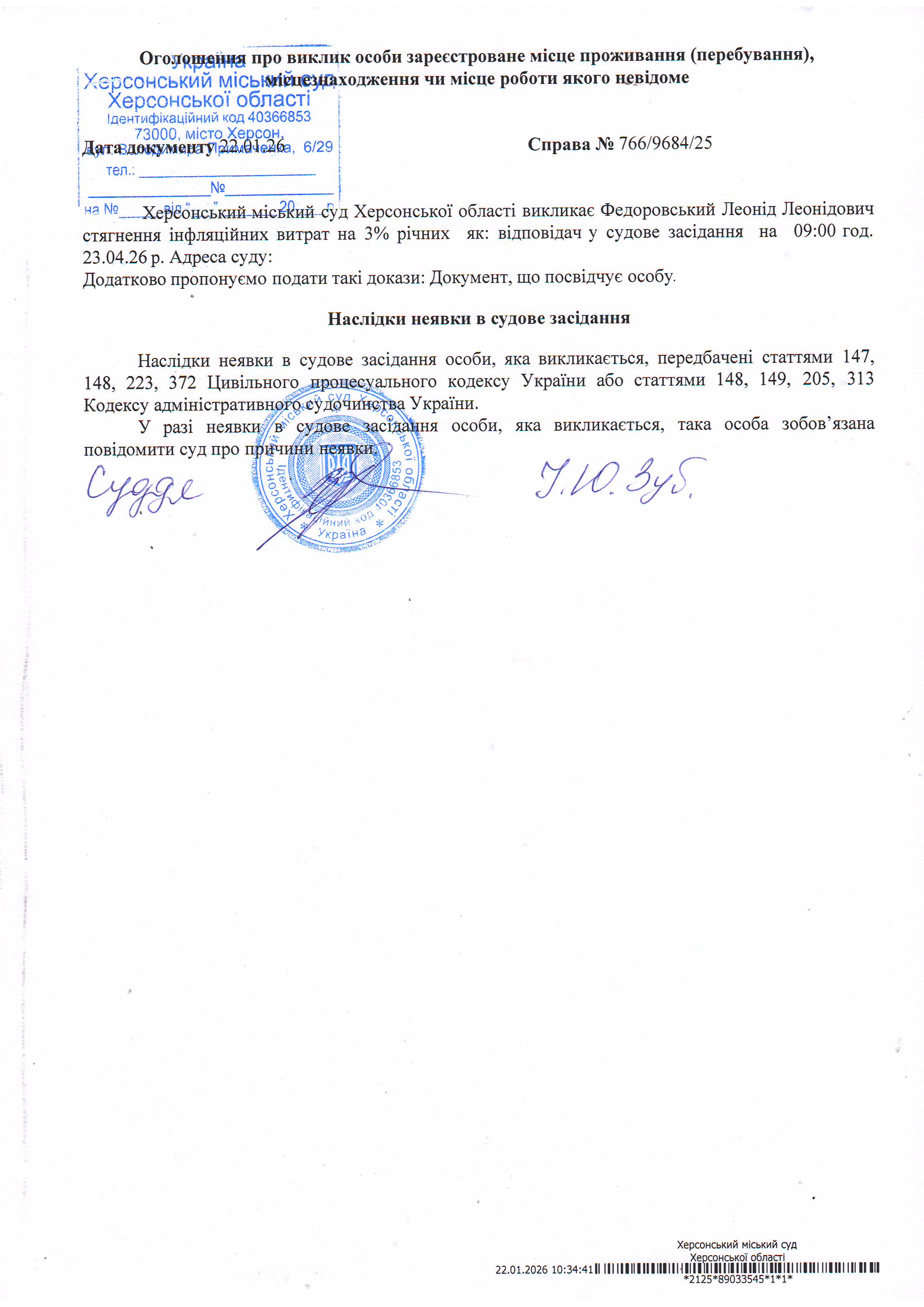 ОГОЛОШЕННЯ ПРО ВИКЛИК ДО СУДУ