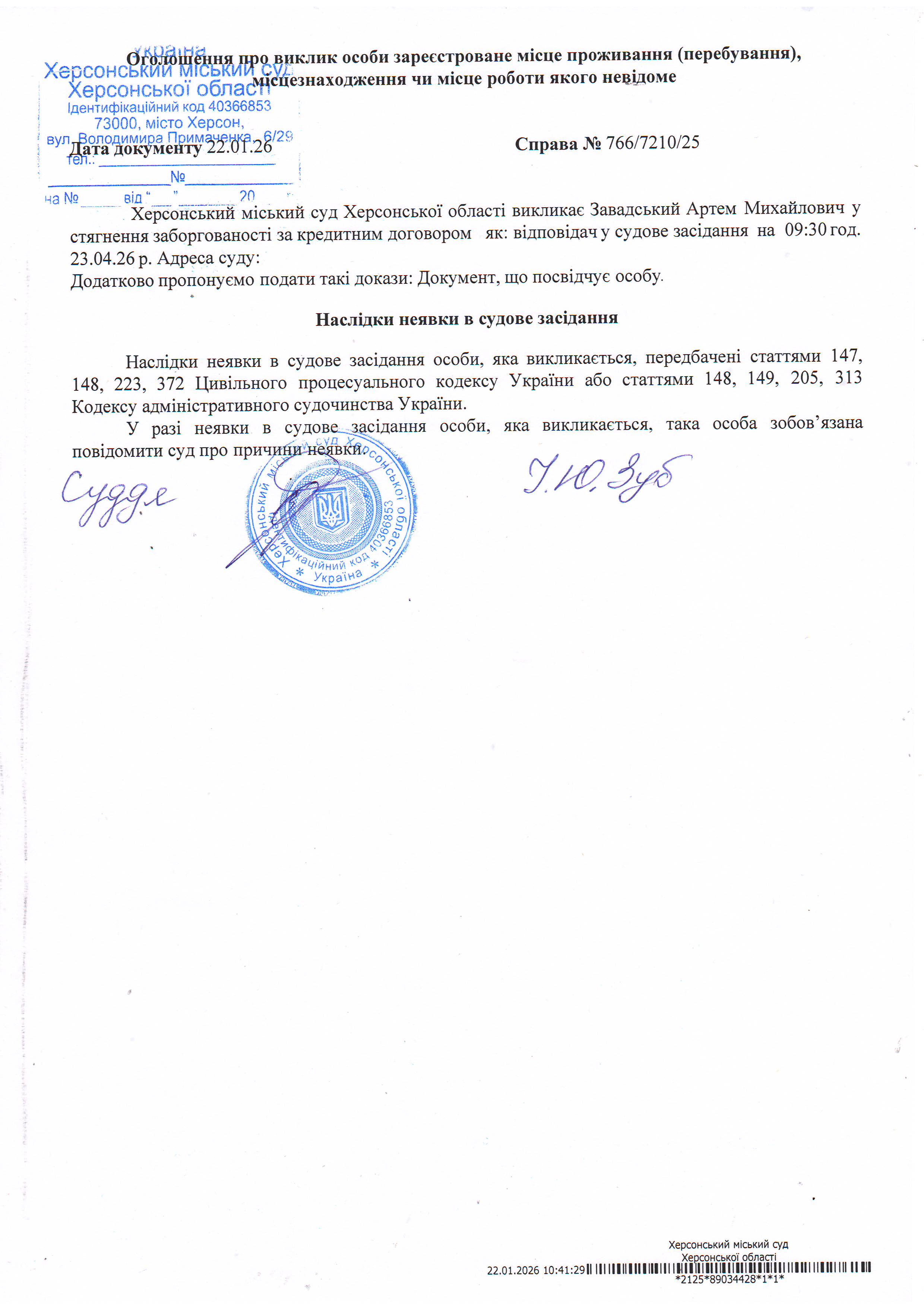 ОГОЛОШЕННЯ ПРО ВИКЛИК ДО СУДУ