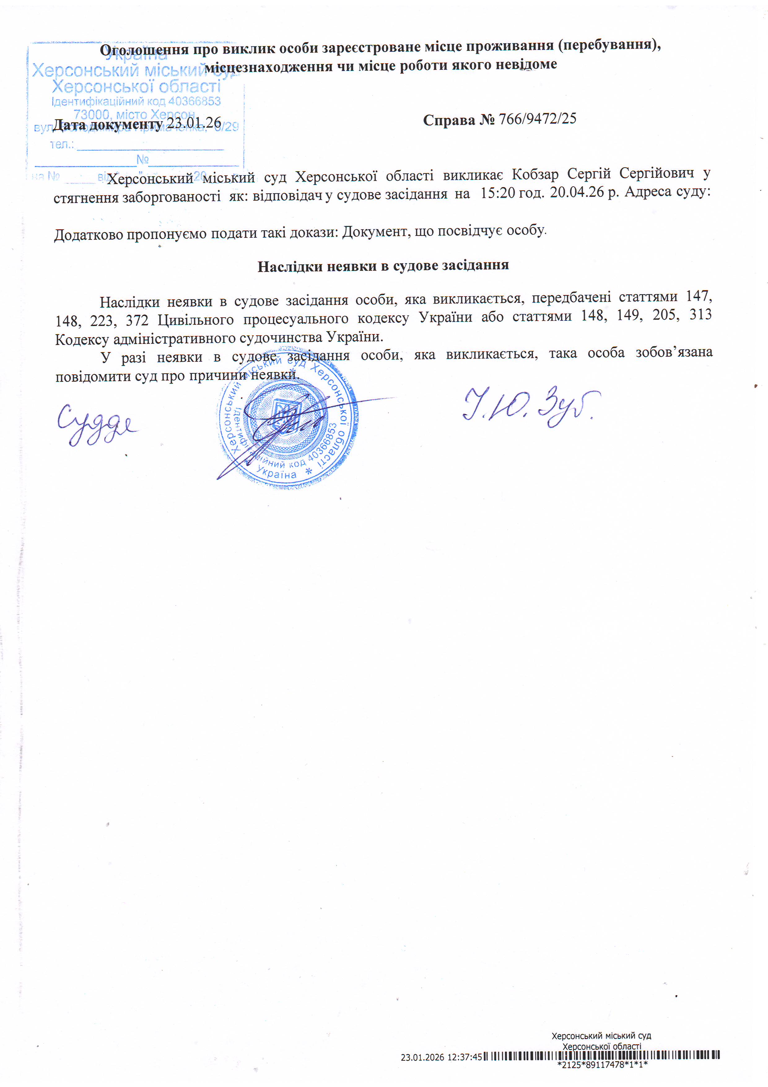 ОГОЛОШЕННЯ ПРО ВИКЛИК ДО СУДУ