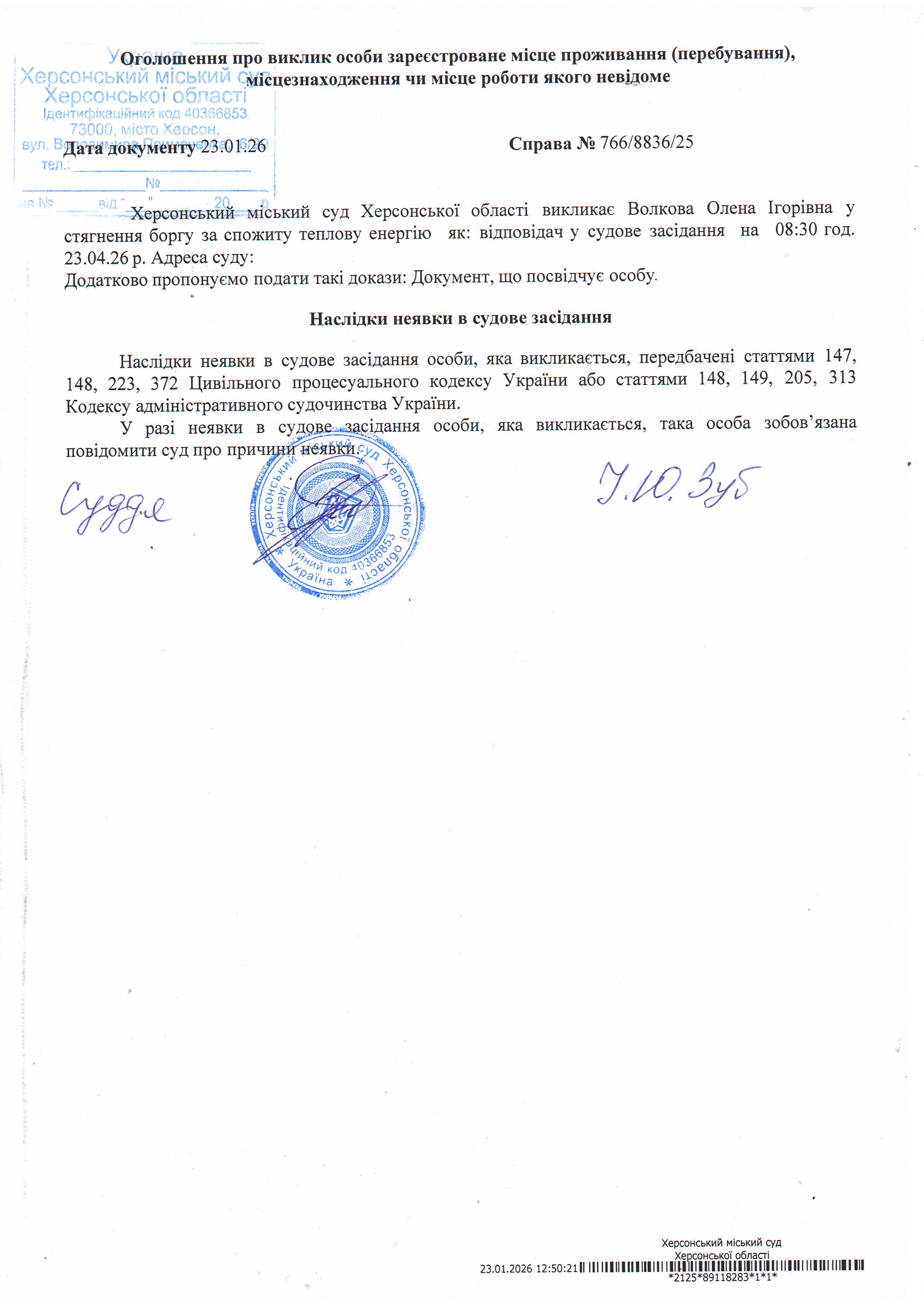 ОГОЛОШЕННЯ ПРО ВИКЛИК ДО СУДУ