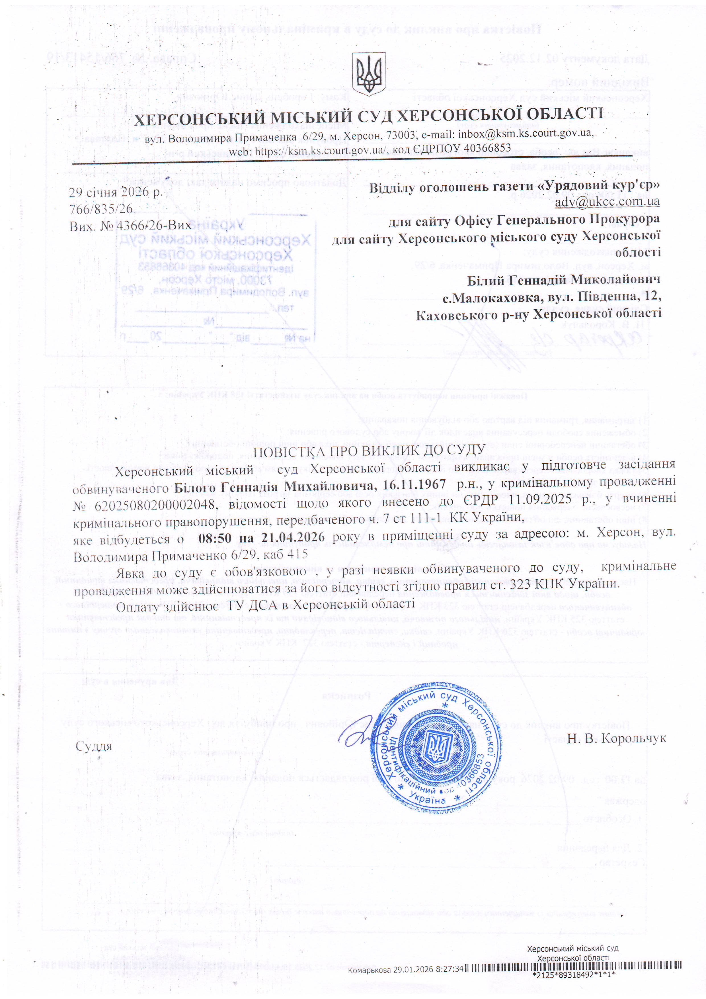 ОГОЛОШЕННЯ ПРО ВИКЛИК ДО СУДУ