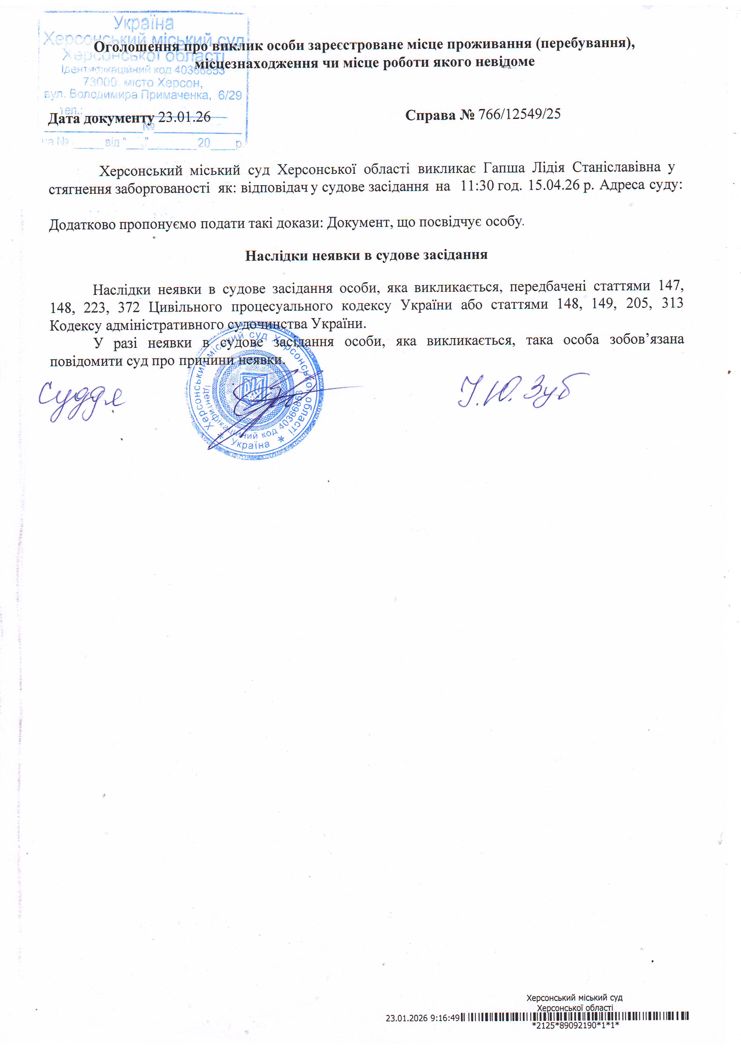 ОГОЛОШЕННЯ ПРО ВИКЛИК ДО СУДУ