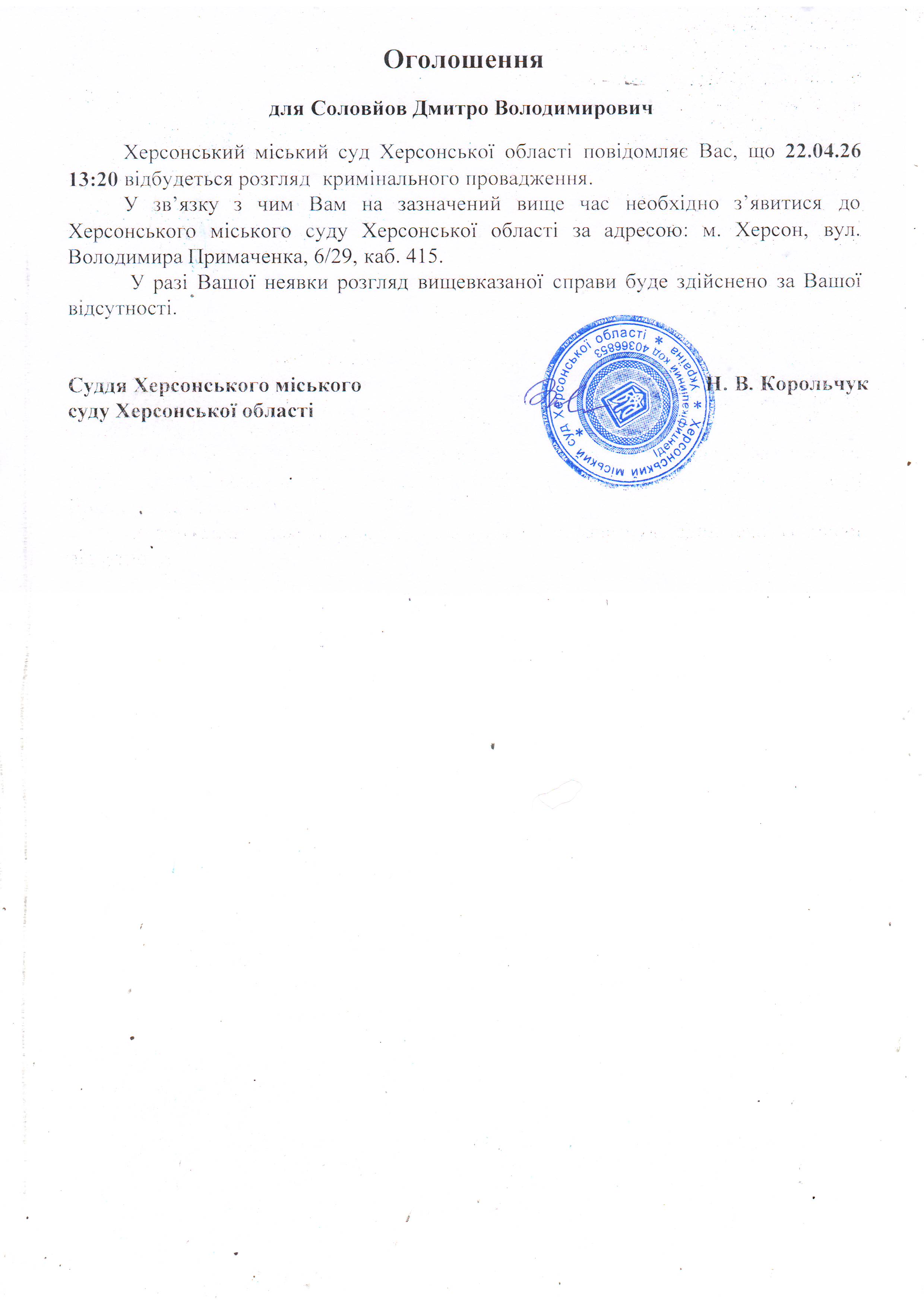 ОГОЛОШЕННЯ ПРО ВИКЛИК ДО СУДУ