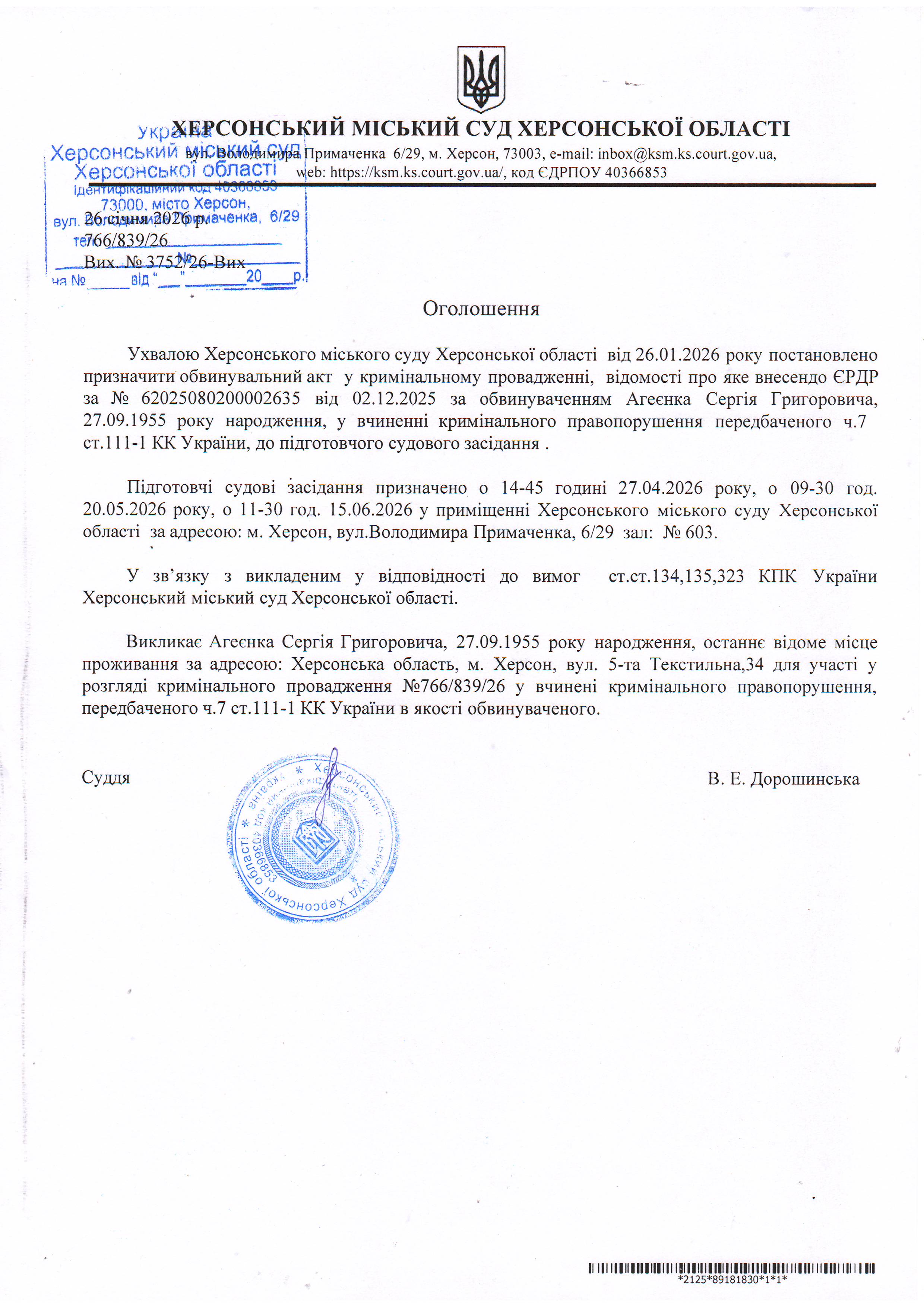 ОГОЛОШЕННЯ ПРО ВИКЛИК ДО СУДУ