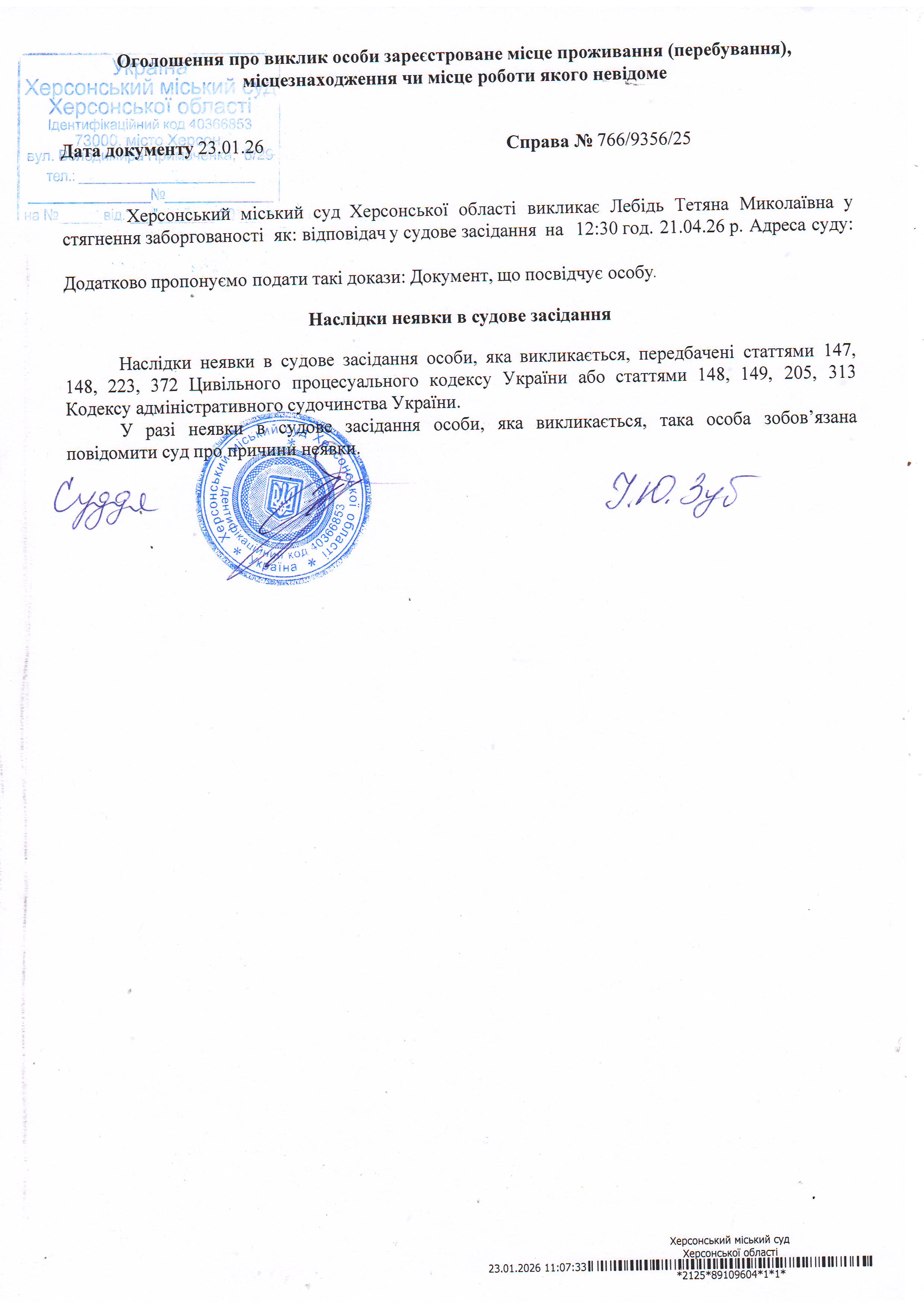 ОГОЛОШЕННЯ ПРО ВИКЛИК ДО СУДУ