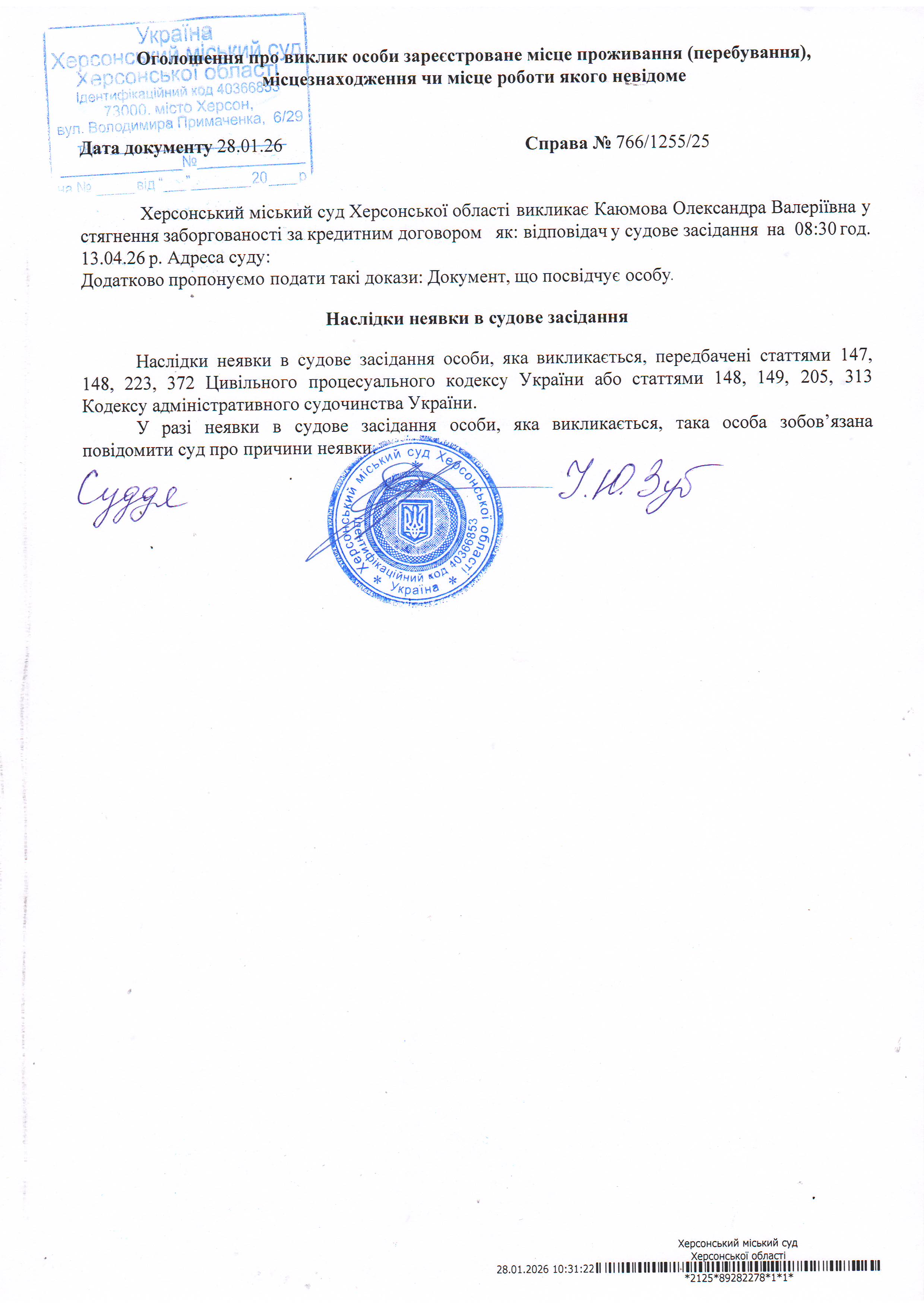 ОГОЛОШЕННЯ ПРО ВИКЛИК ДО СУДУ