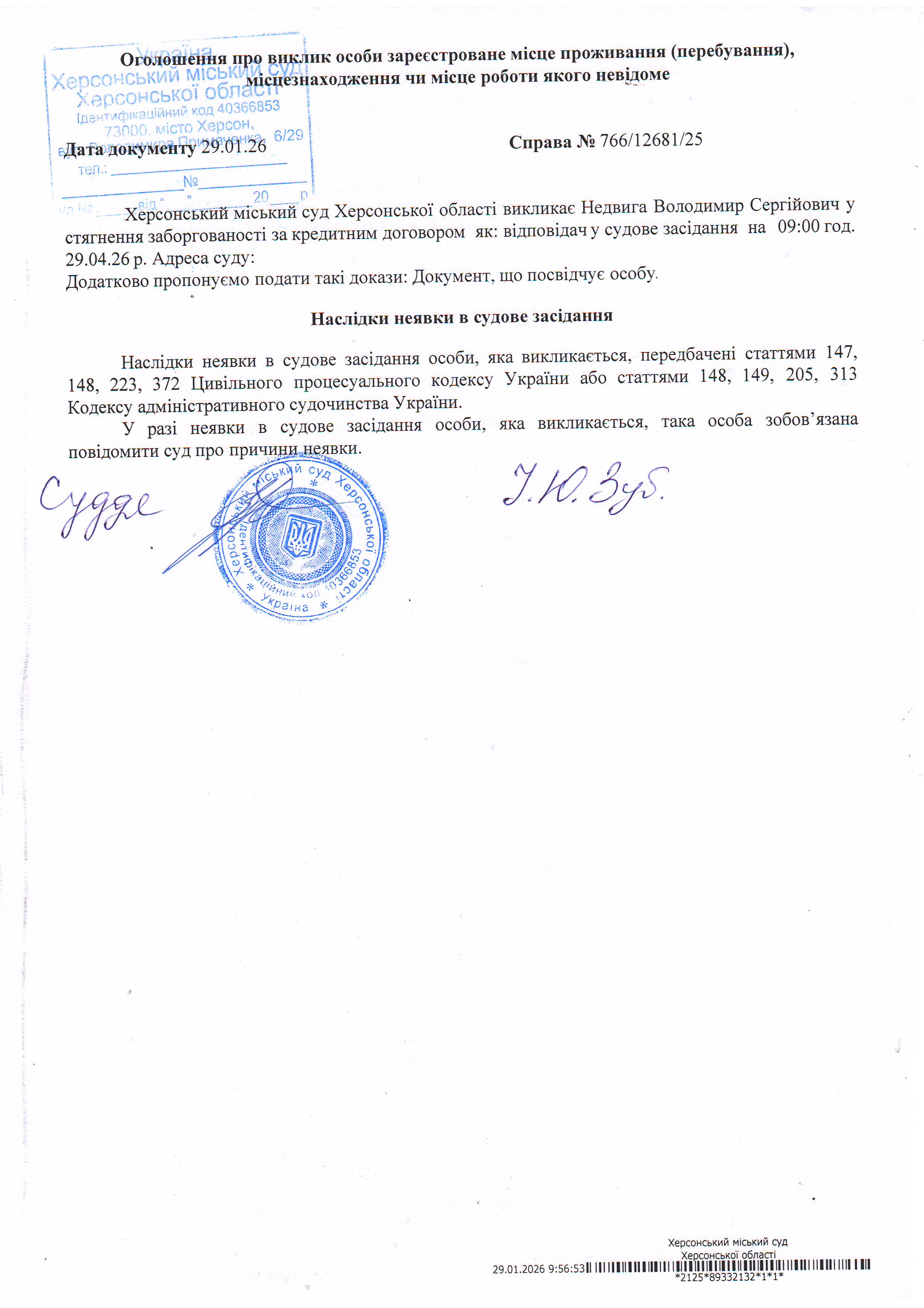 ОГОЛОШЕННЯ ПРО ВИКЛИК ДО СУДУ
