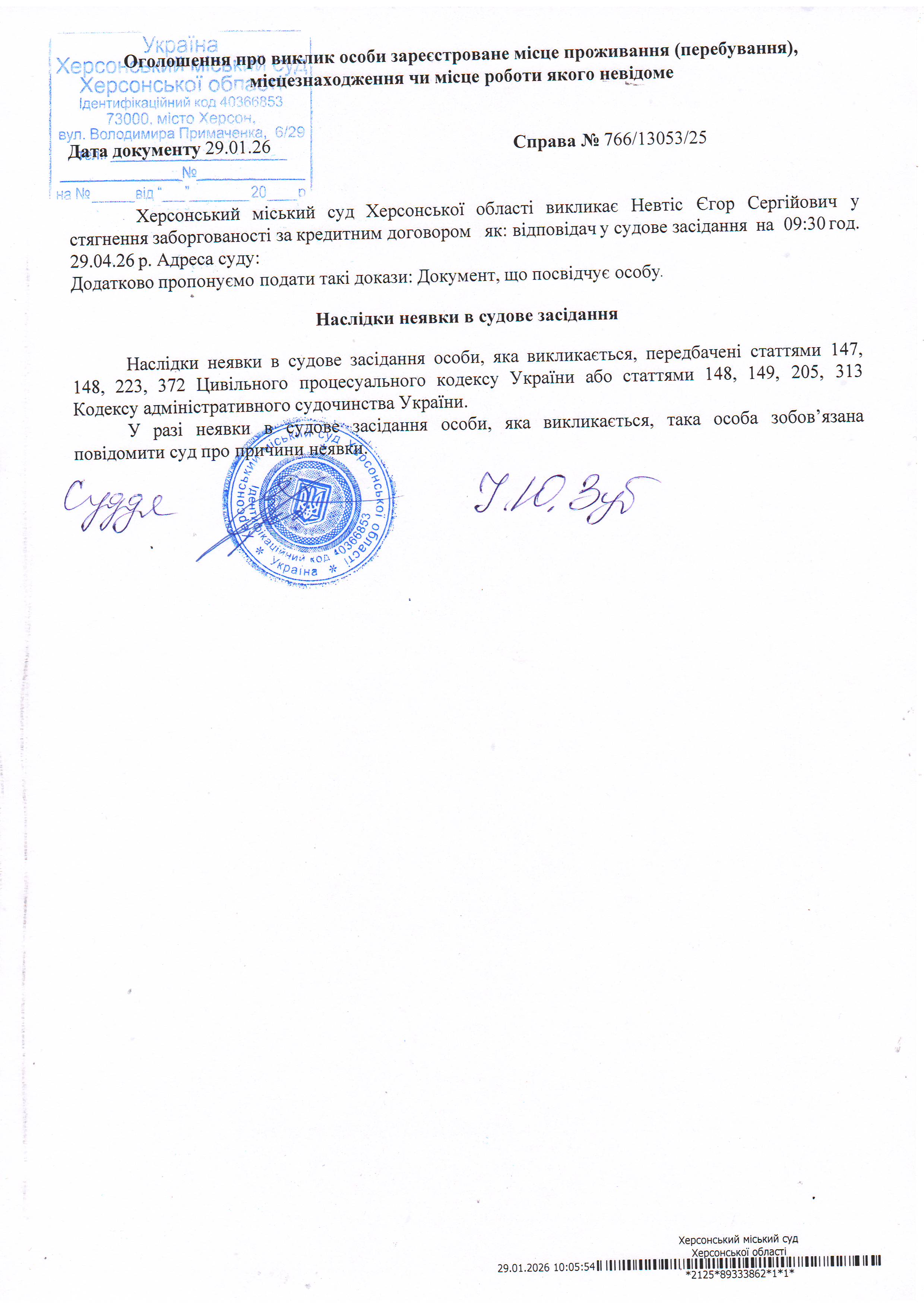 ОГОЛОШЕННЯ ПРО ВИКЛИК ДО СУДУ