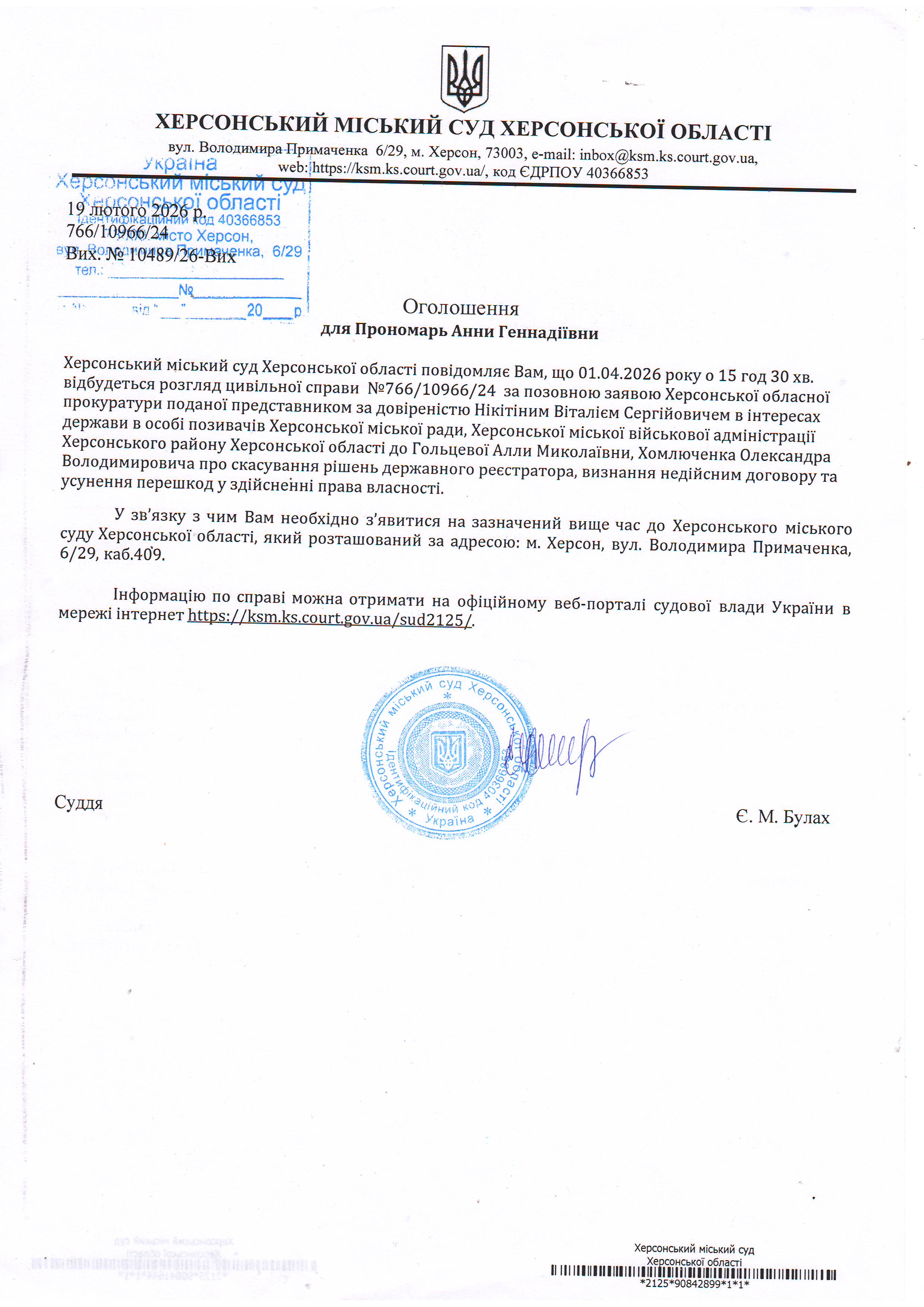 ОГОЛОШЕННЯ ПРО ВИКЛИК ДО СУДУ