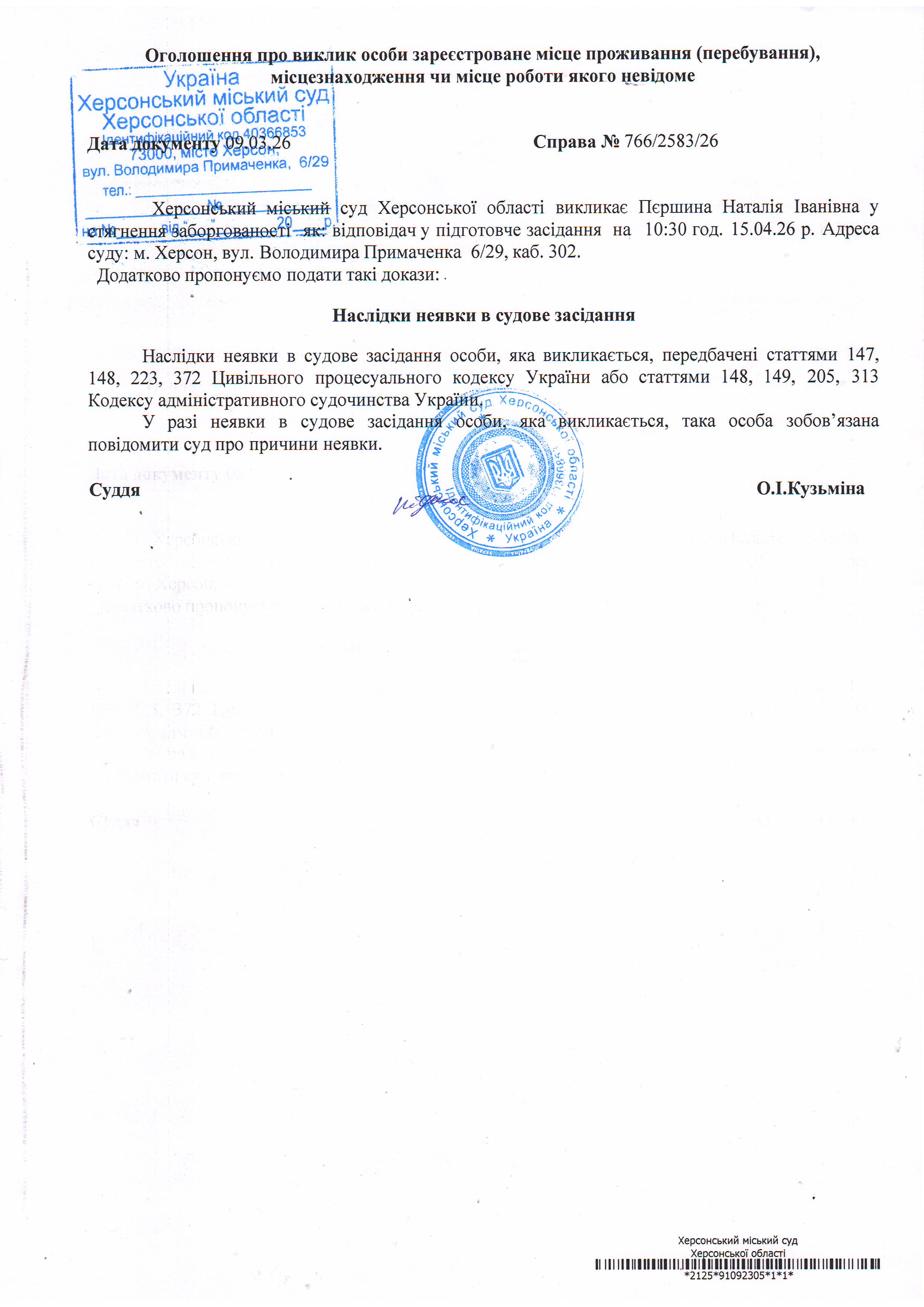 ОГОЛОШЕННЯ ПРО ВИКЛИК ДО СУДУ