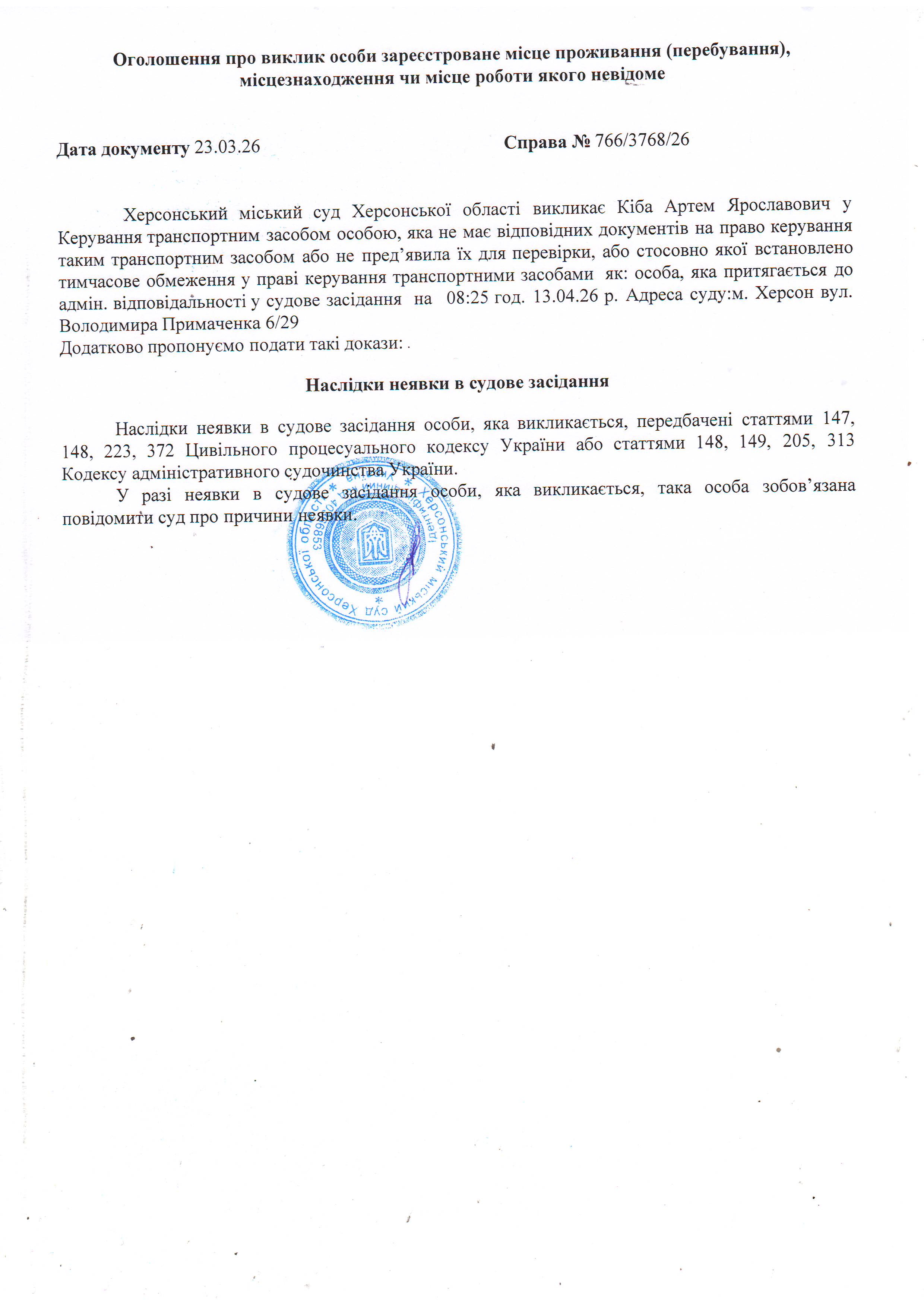 ОГОЛОШЕННЯ ПРО ВИКЛИК ДО СУДУ