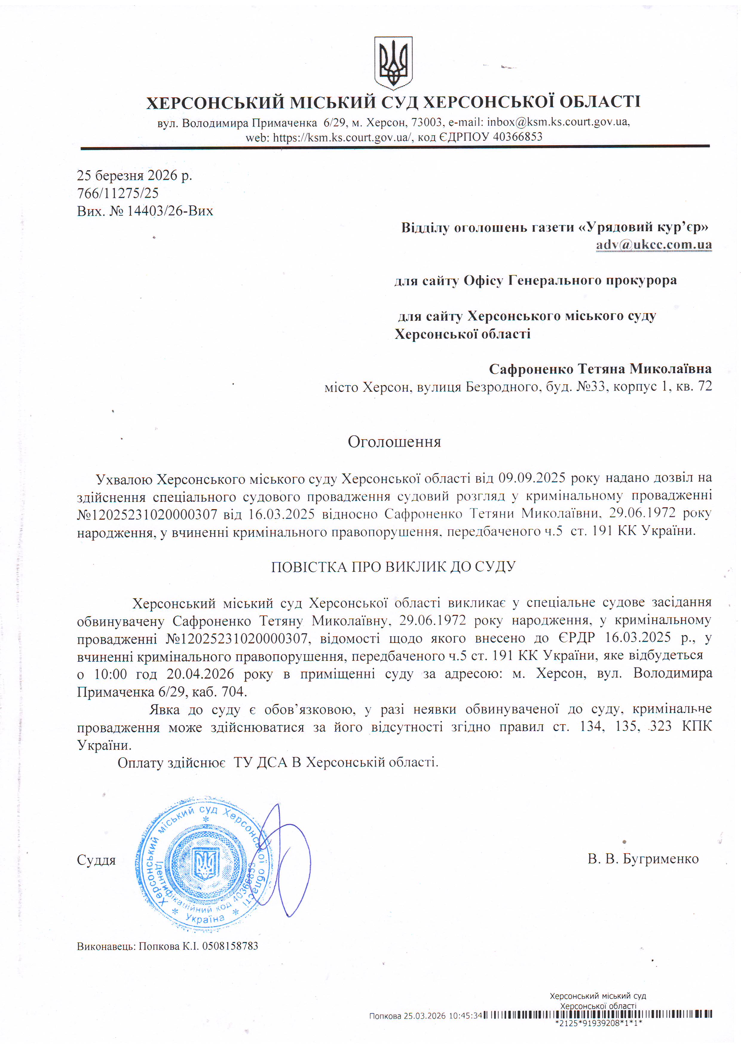 ОГОЛОШЕННЯ ПРО ВИКЛИК ДО СУДУ