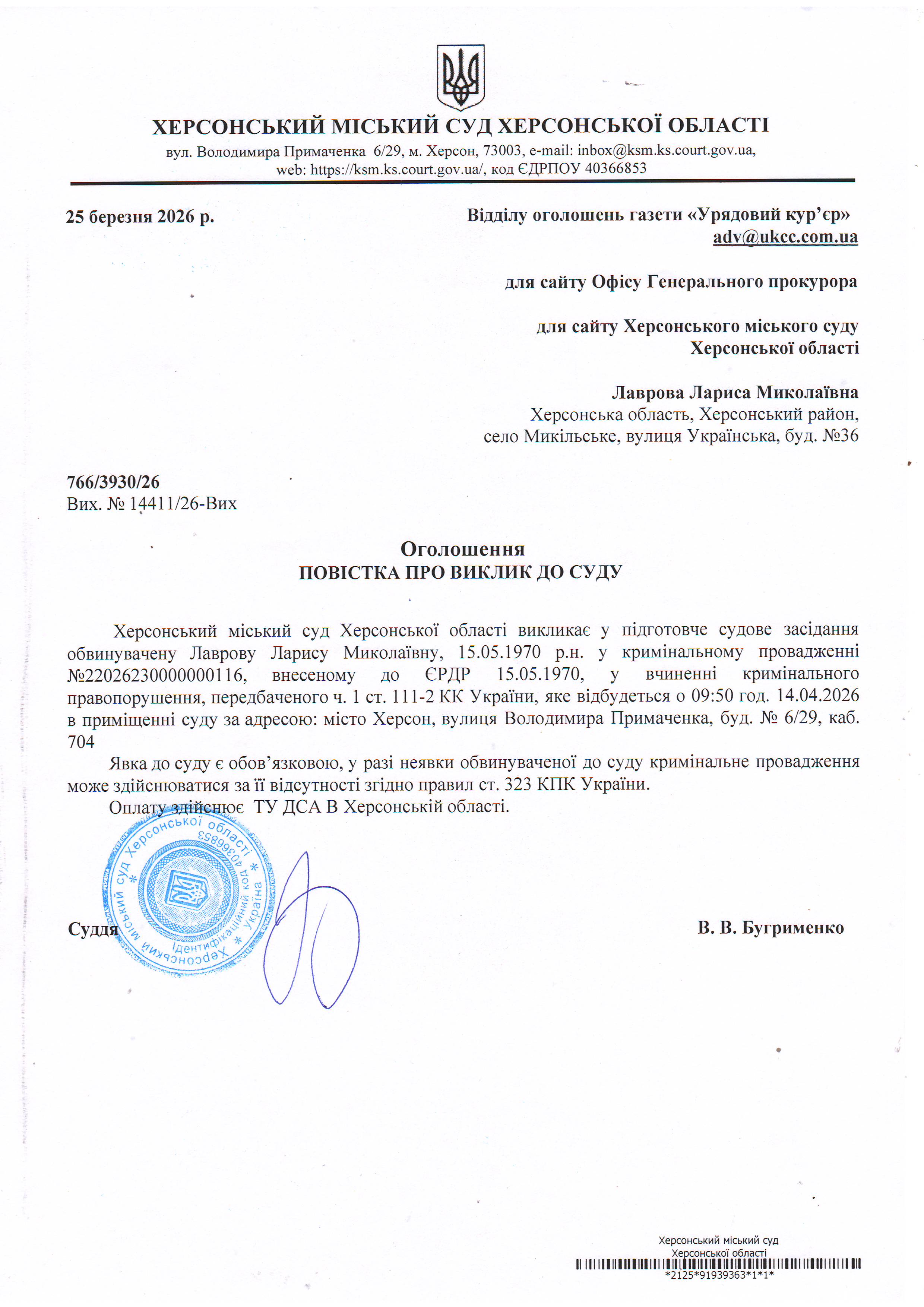 ОГОЛОШЕННЯ ПРО ВИКЛИК ДО СУДУ