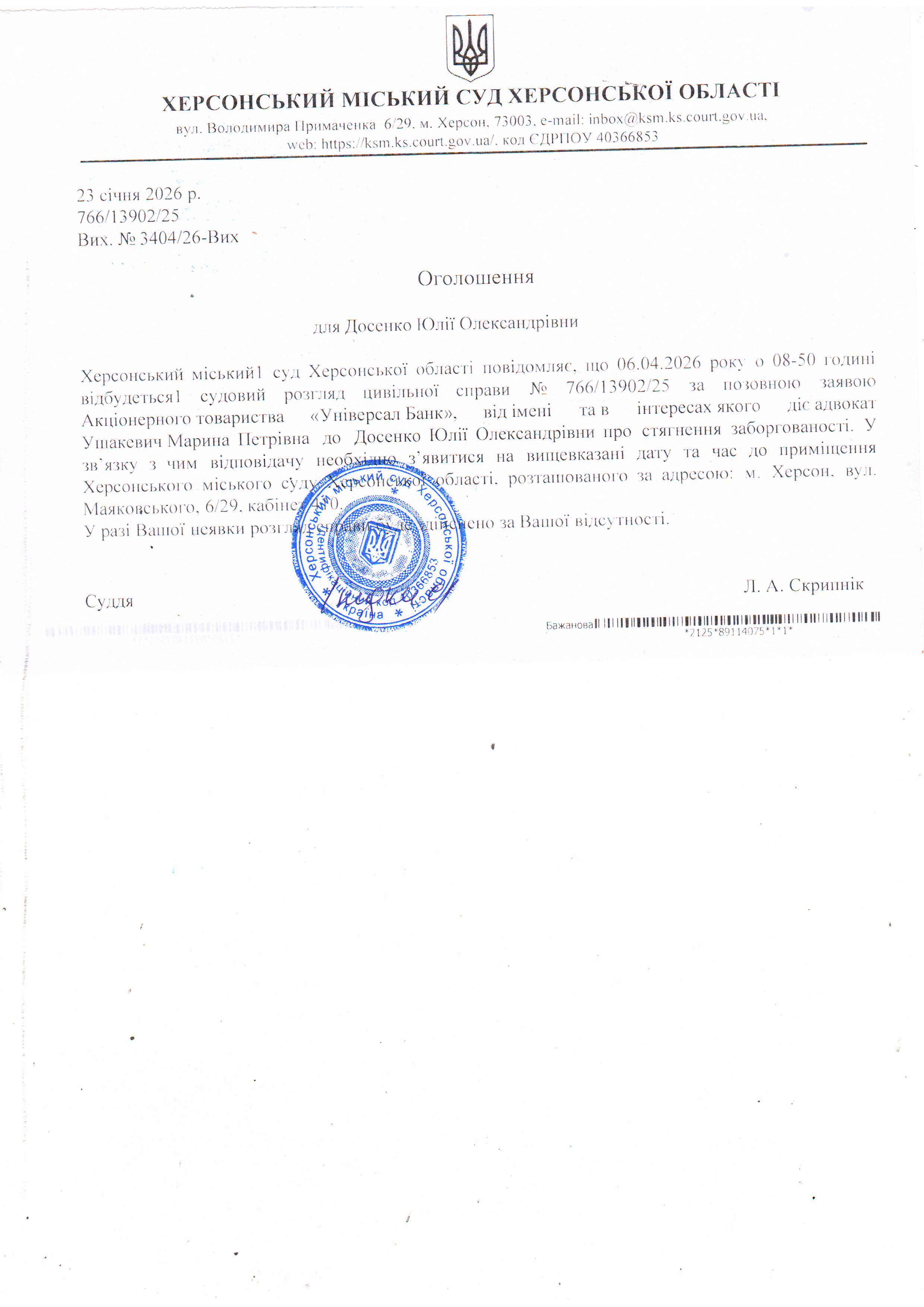 ОГОЛОШЕННЯ ПРО ВИКЛИК ДО СУДУ