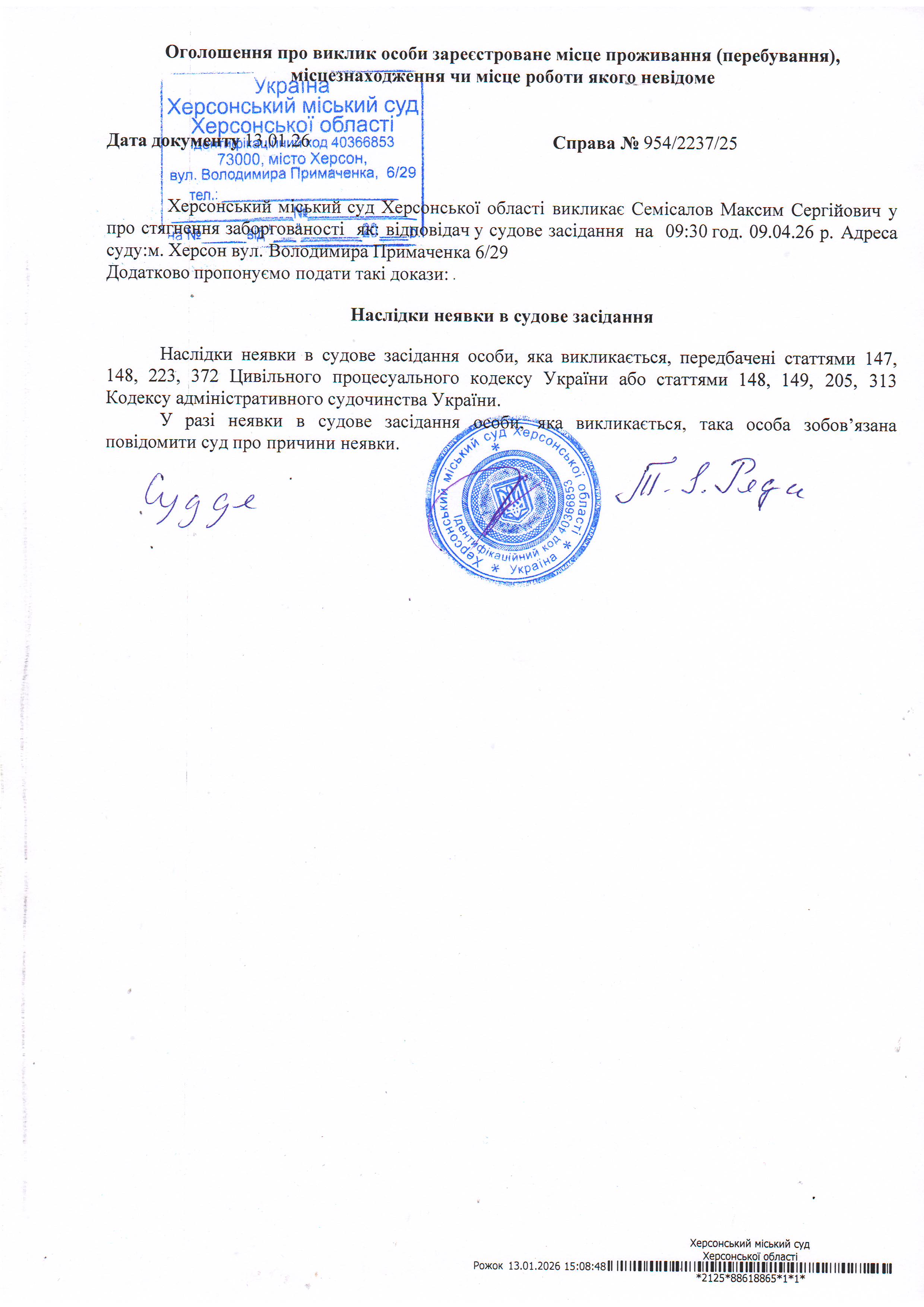 ОГОЛОШЕННЯ ПРО ВИКЛИК ДО СУДУ