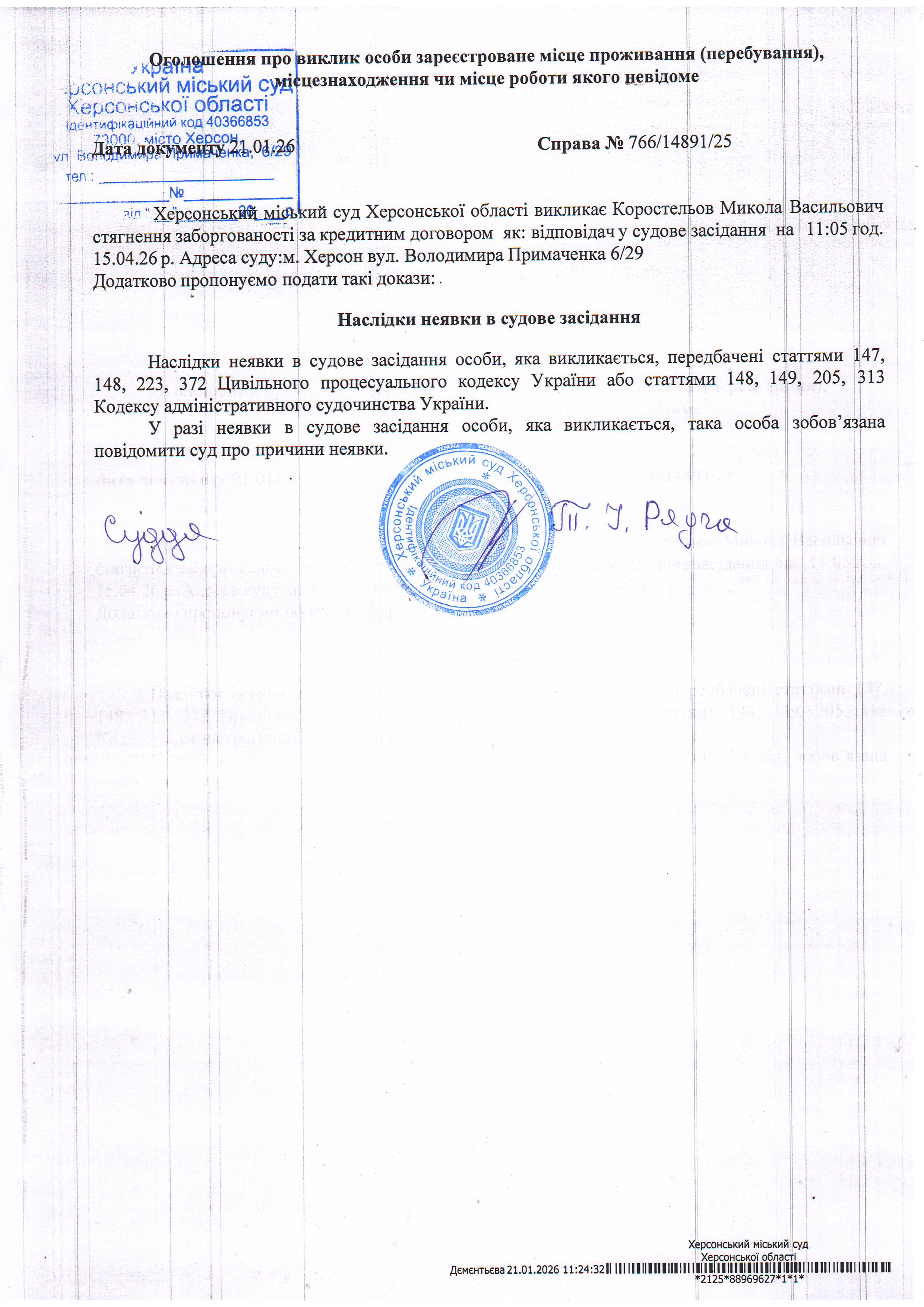 ОГОЛОШЕННЯ ПРО ВИКЛИК ДО СУДУ