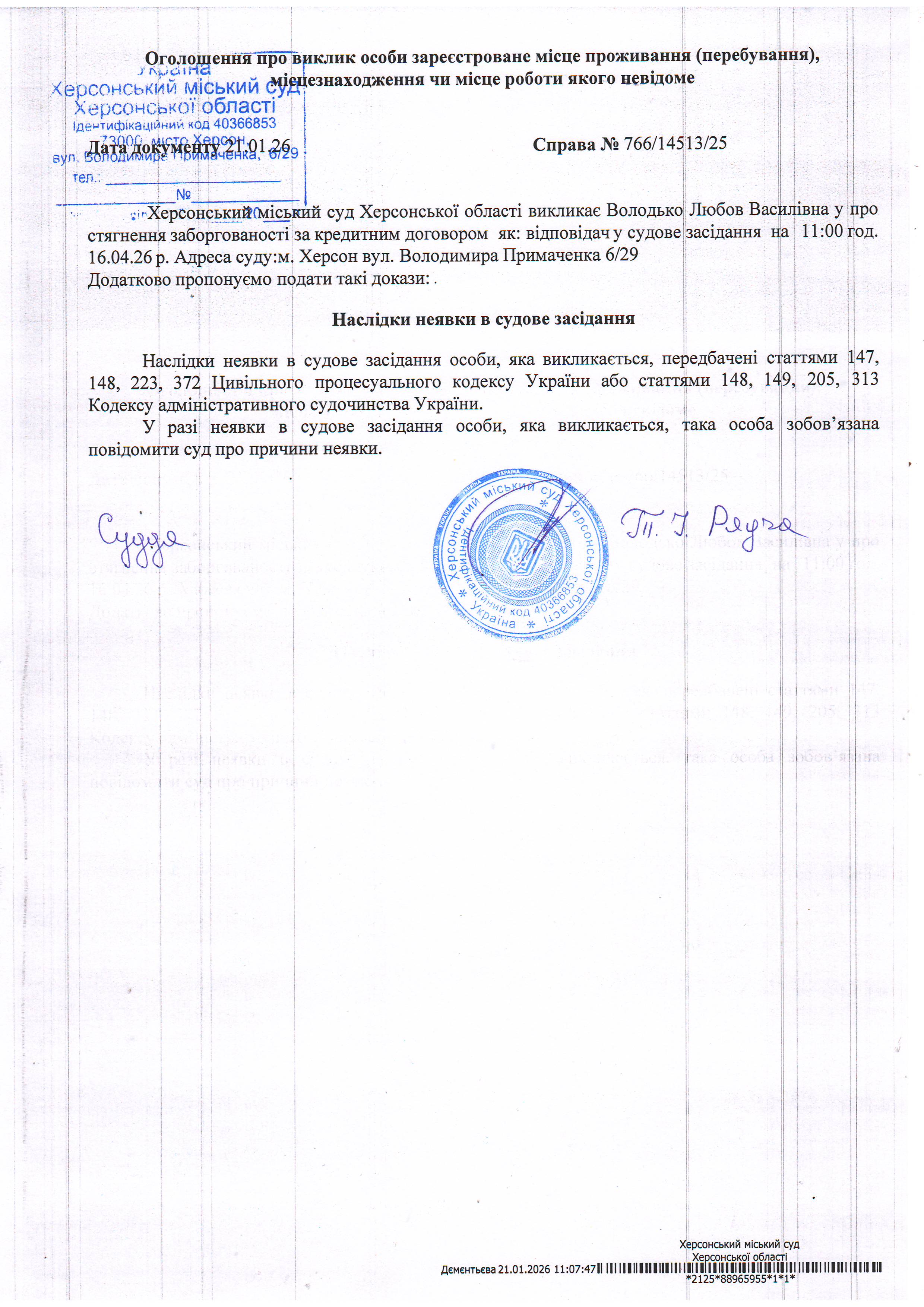 ОГОЛОШЕННЯ ПРО ВИКЛИК ДО СУДУ