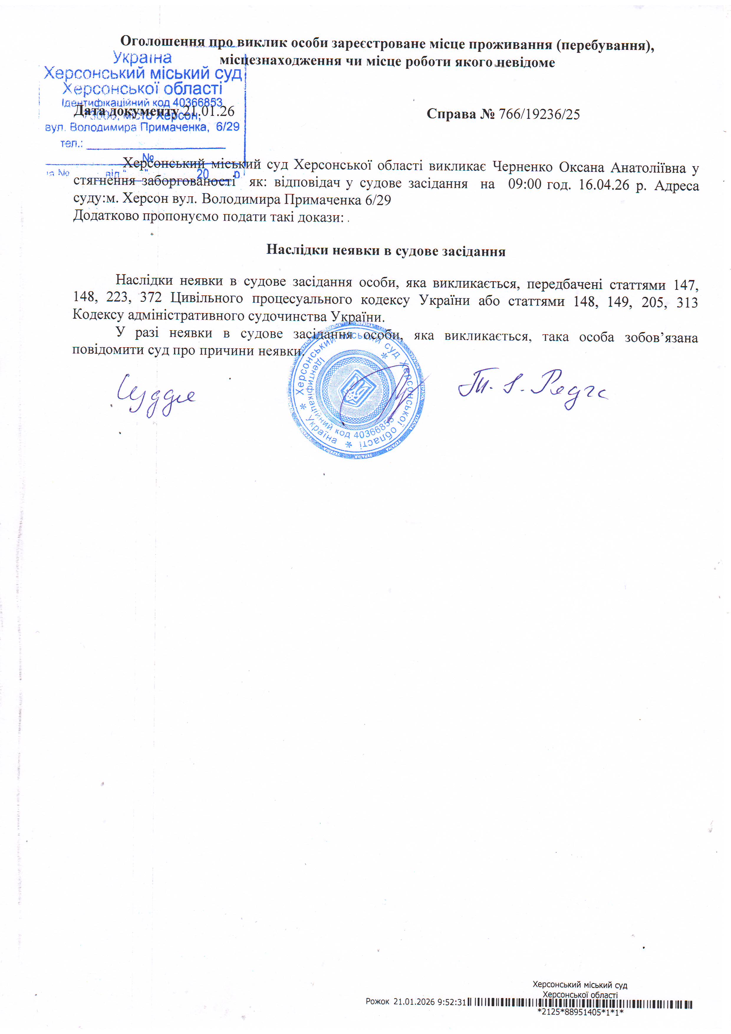 ОГОЛОШЕННЯ ПРО ВИКЛИК ДО СУДУ