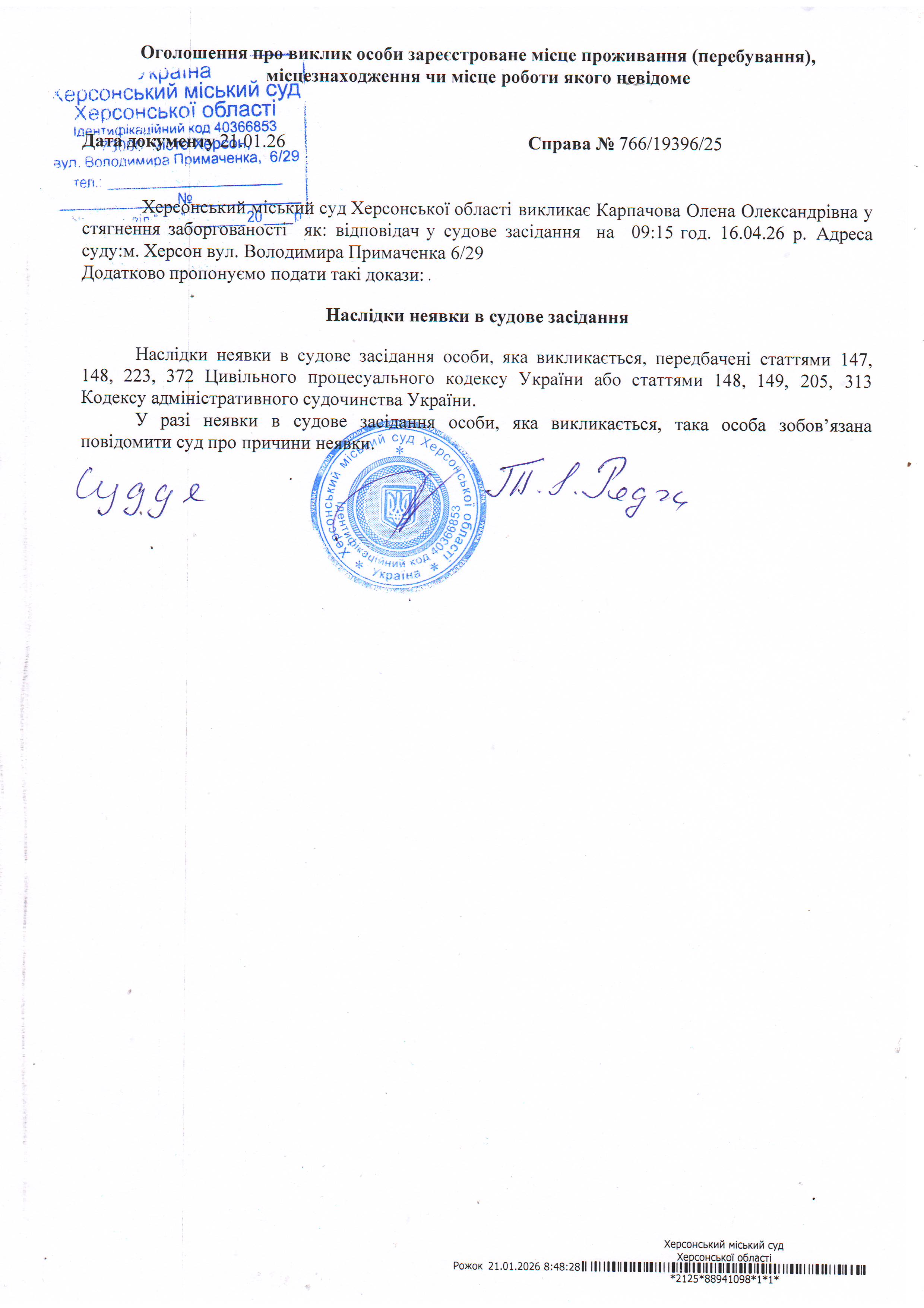 ОГОЛОШЕННЯ ПРО ВИКЛИК ДО СУДУ
