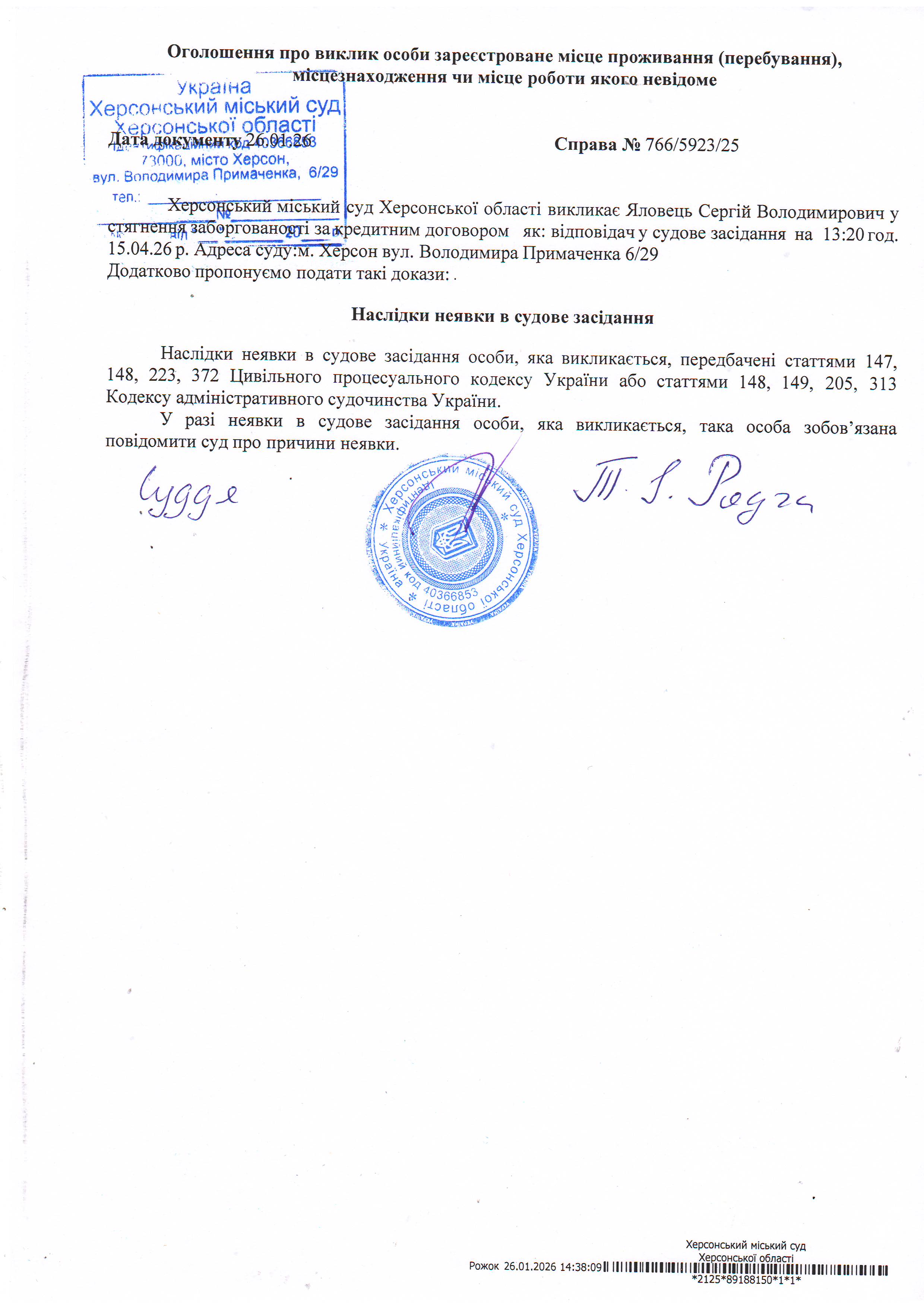 Оголошення про виклик особи в суд та повідомлення про судове рішення