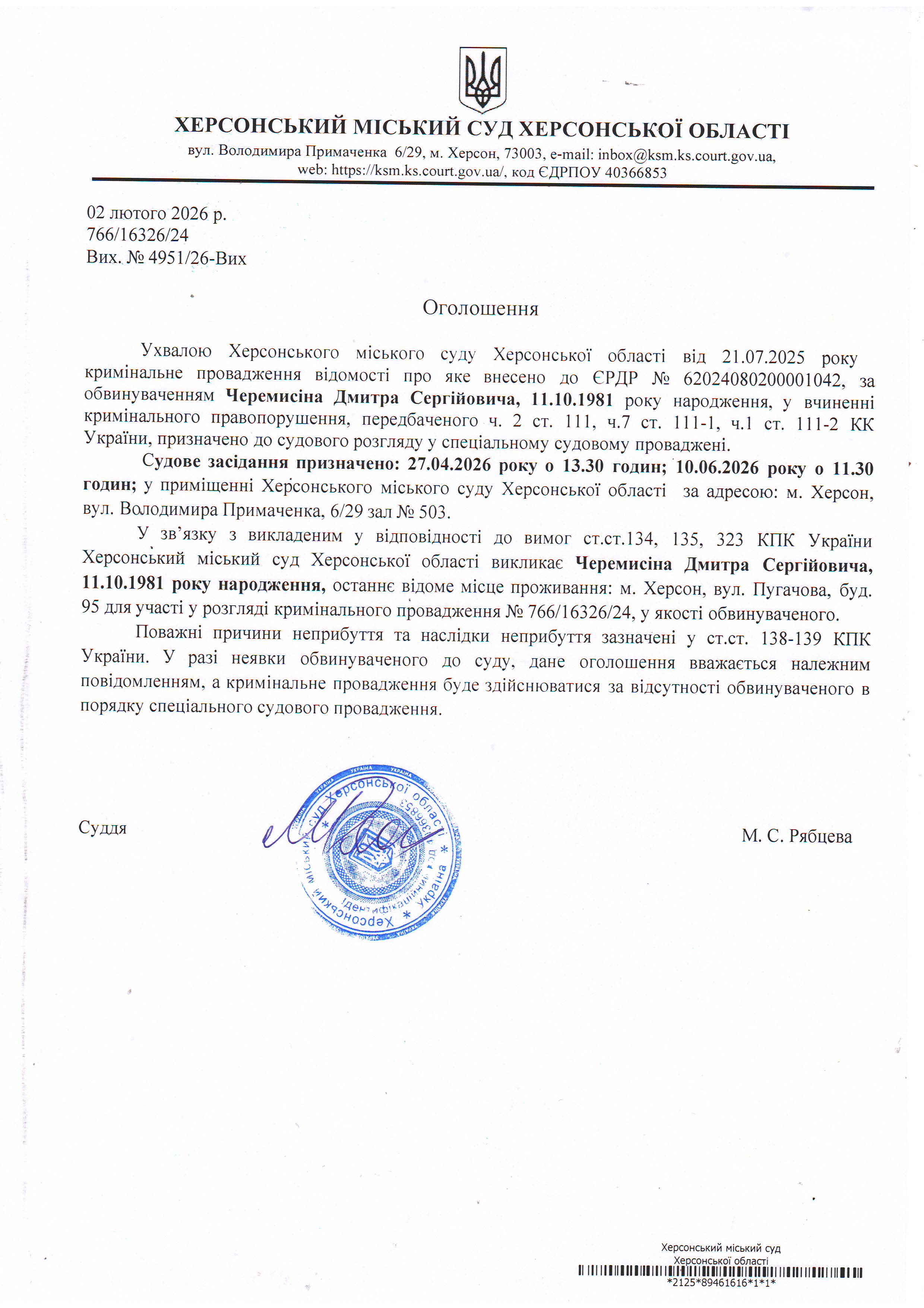Оголошення про виклик особи в суд та повідомлення про судове рішення