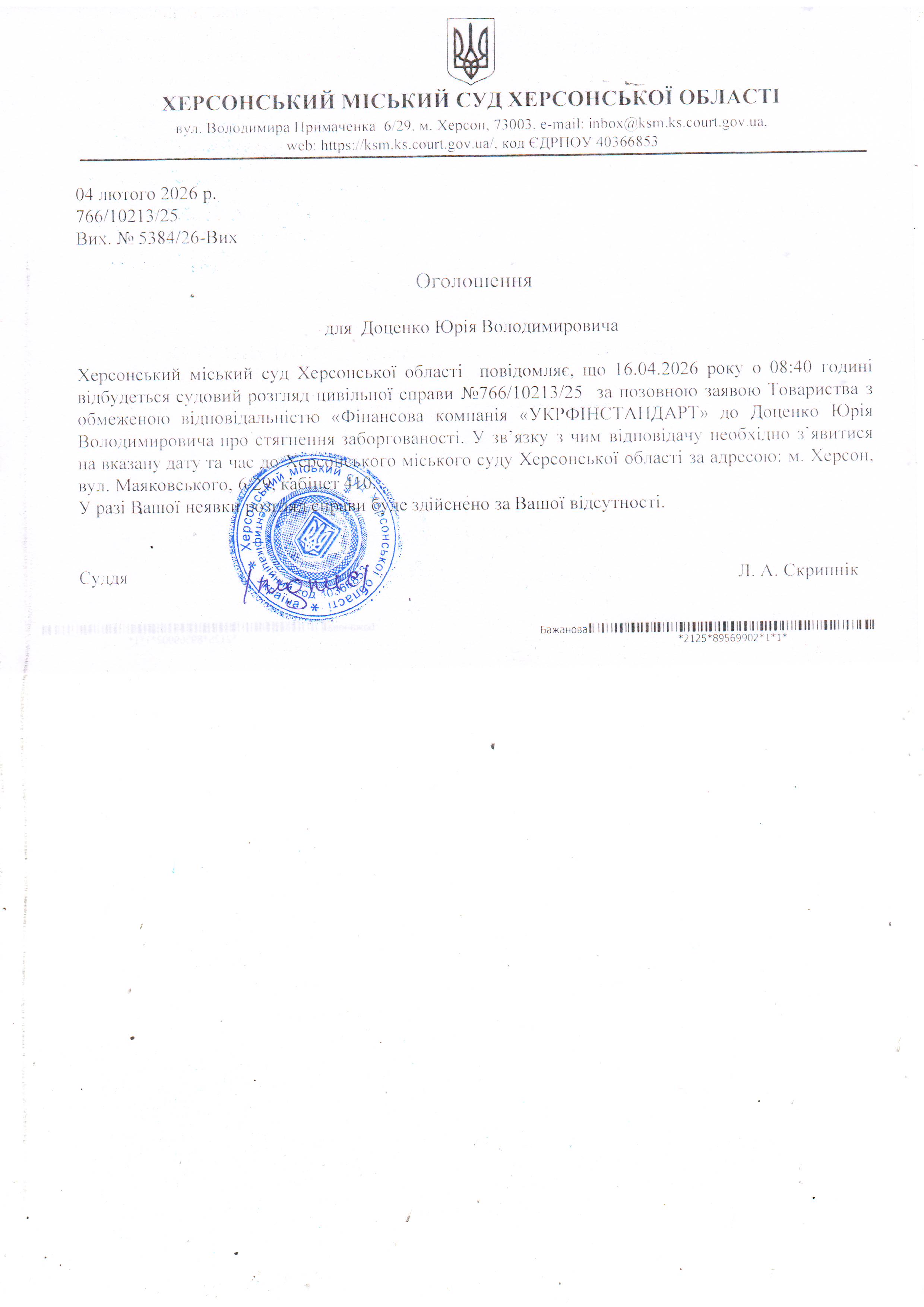 ОГОЛОШЕННЯ ПРО ВИКЛИК ДО СУДУ