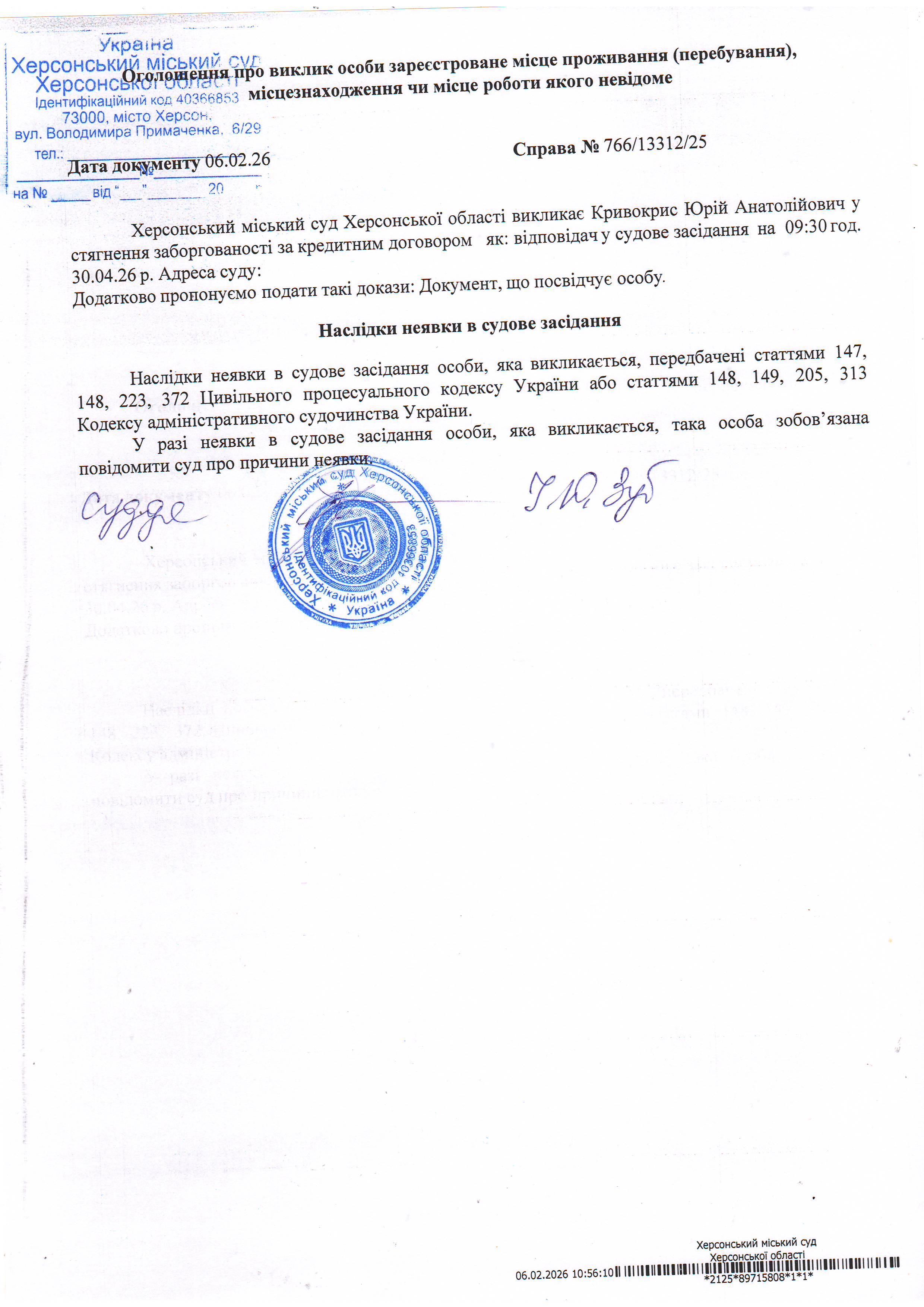 ОГОЛОШЕННЯ ПРО ВИКЛИК ДО СУДУ