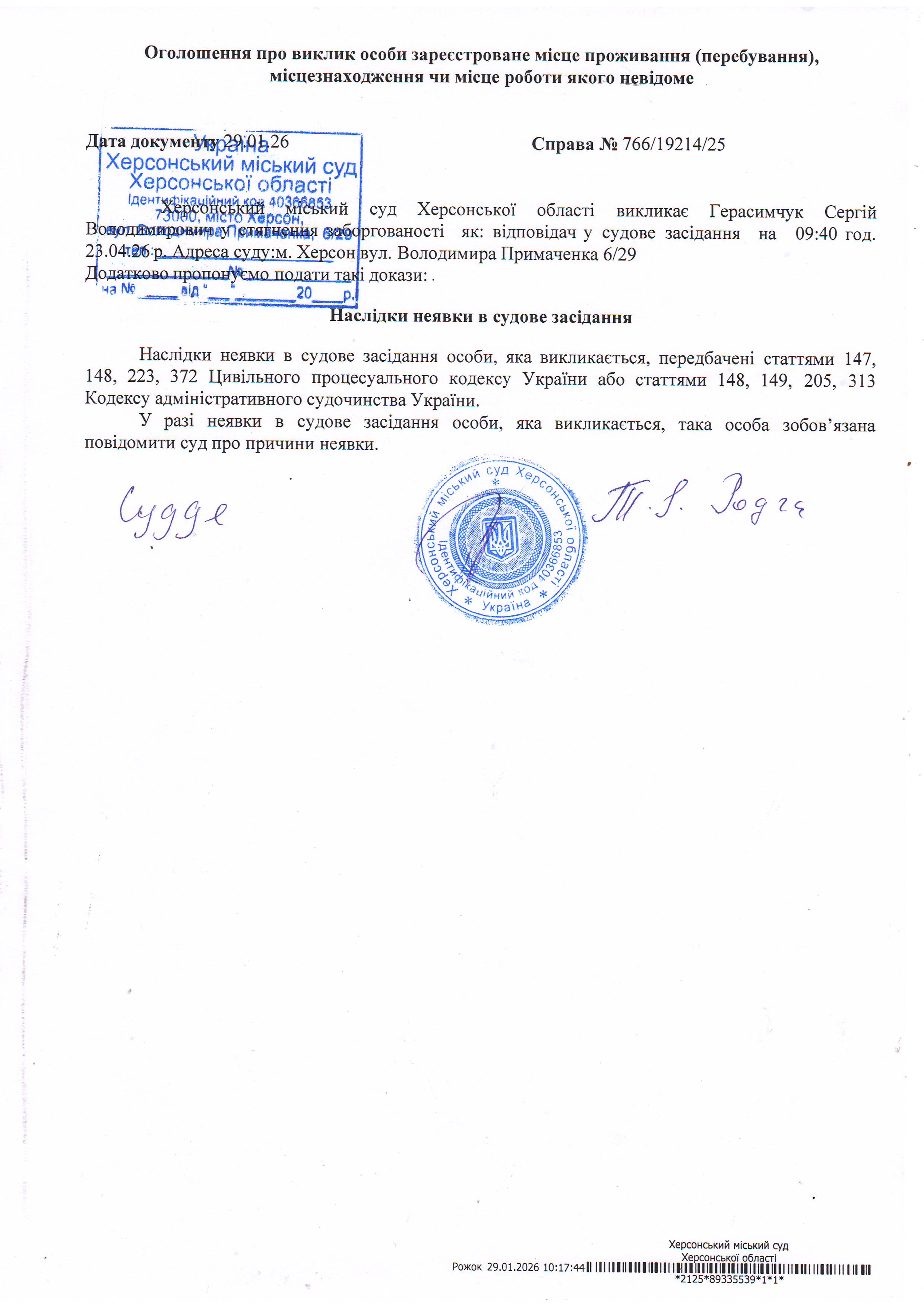 Інформація про місцезнаходження Херсонського міського суду Херсонської області