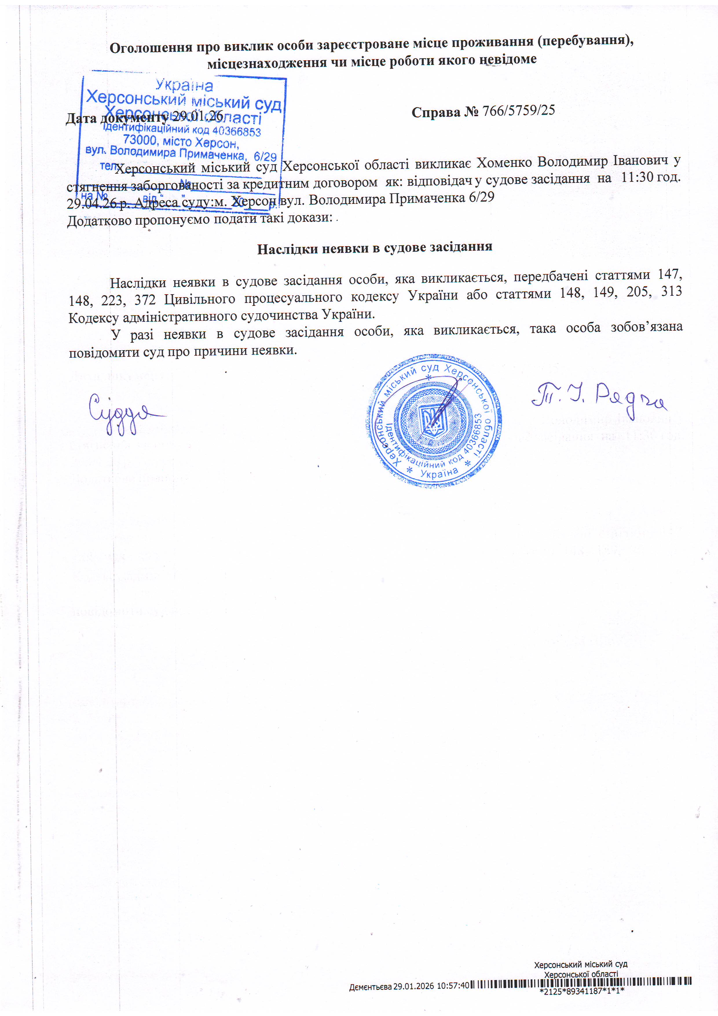 ОГОЛОШЕННЯ ПРО ВИКЛИК ДО СУДУ