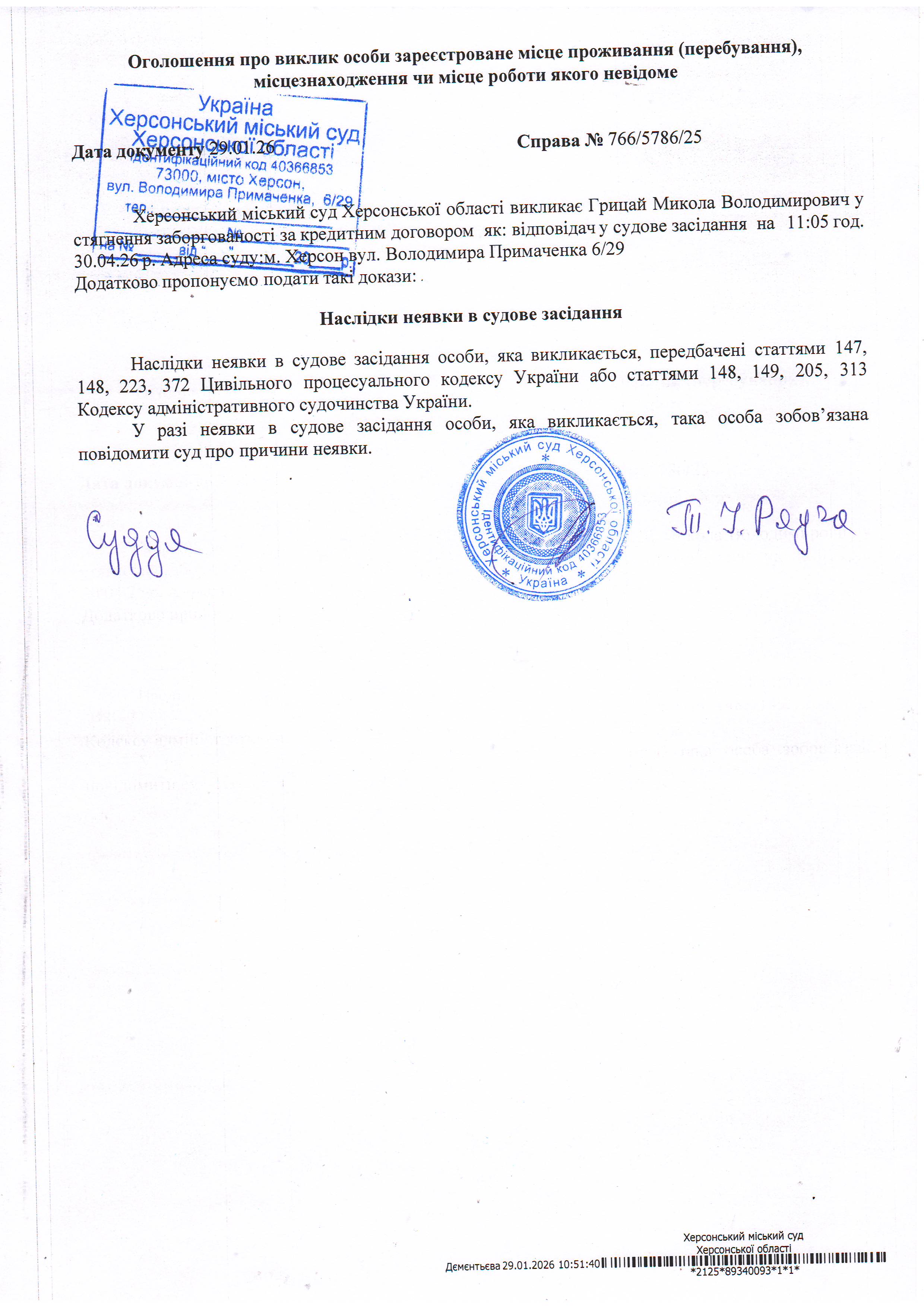ОГОЛОШЕННЯ ПРО ВИКЛИК ДО СУДУ