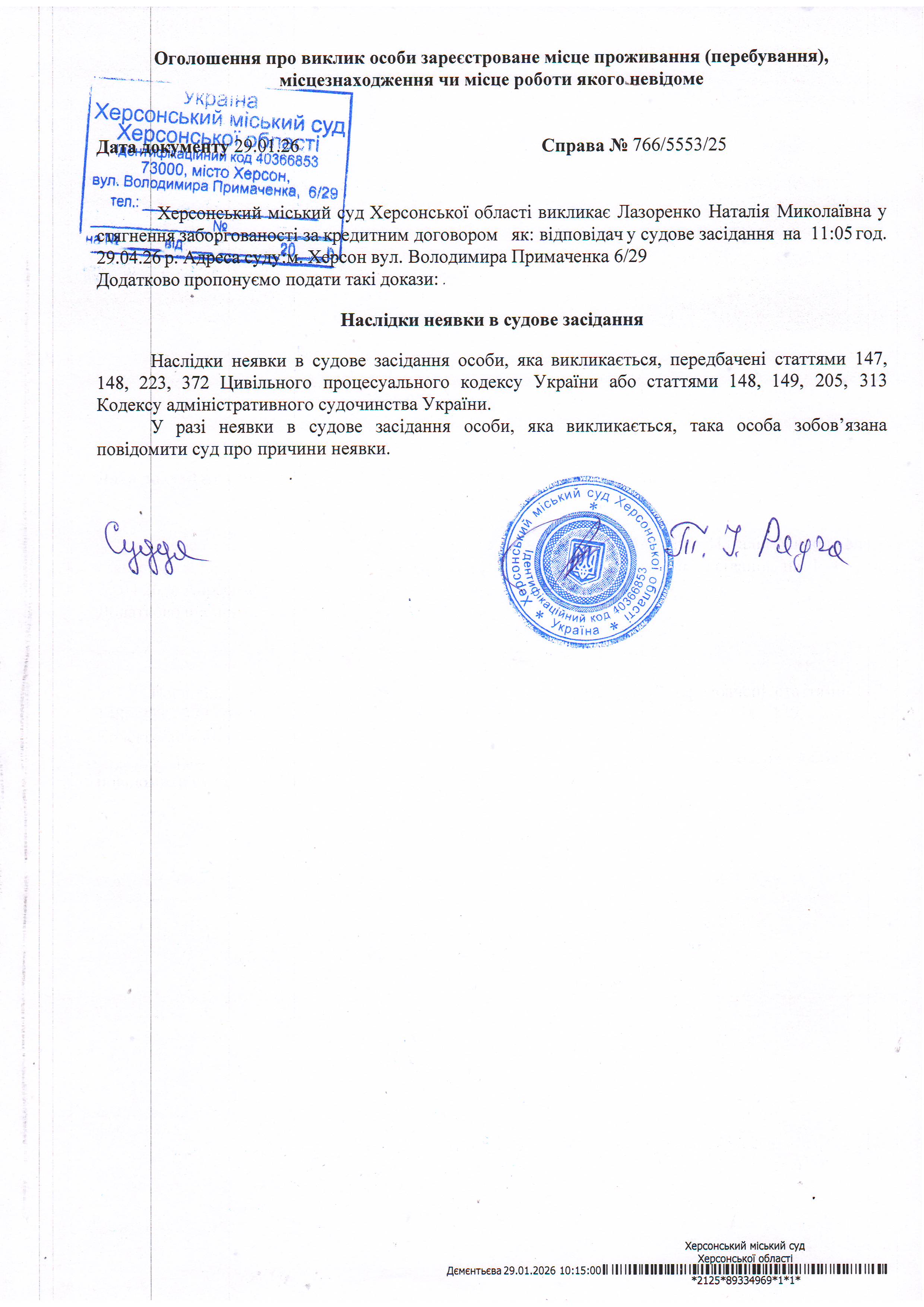 ОГОЛОШЕННЯ ПРО ВИКЛИК ДО СУДУ