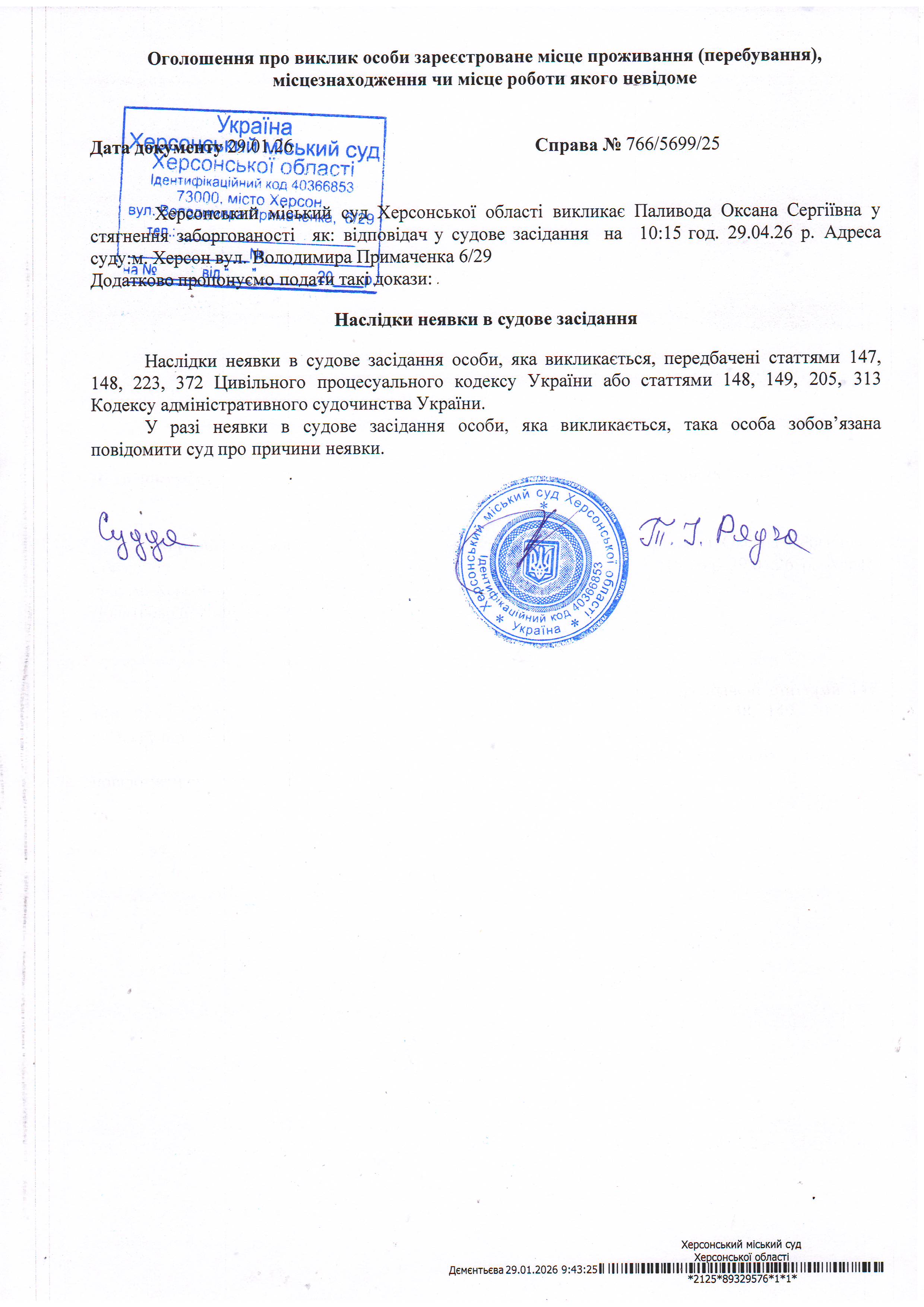 Оголошення про виклик особи в суд та повідомлення про судове рішення