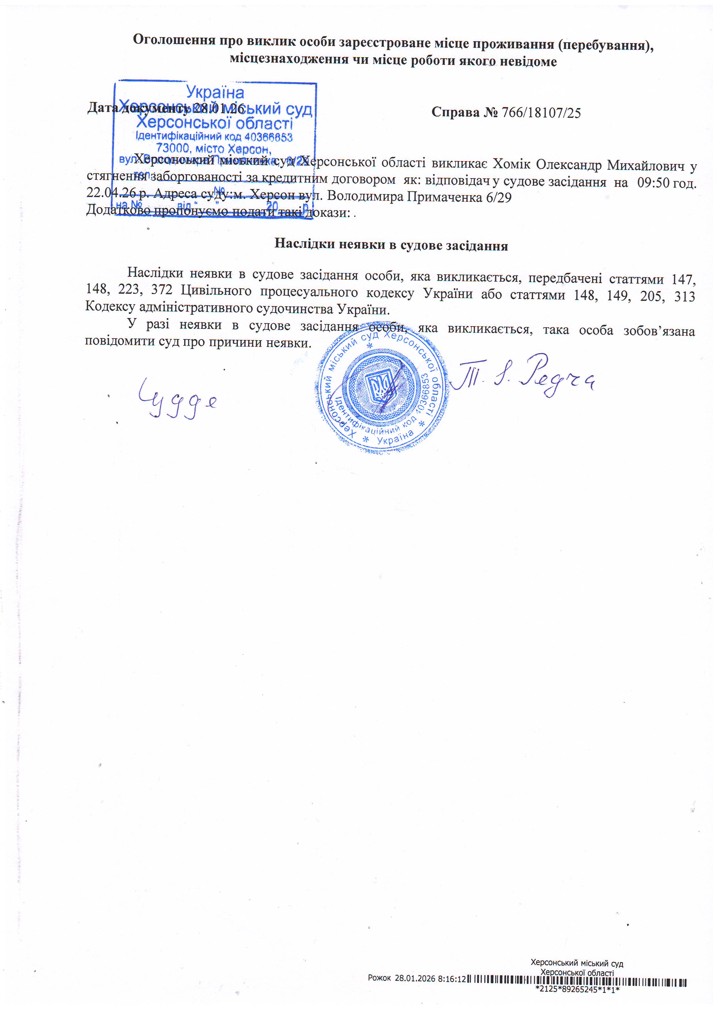 ОГОЛОШЕННЯ ПРО ВИКЛИК ДО СУДУ
