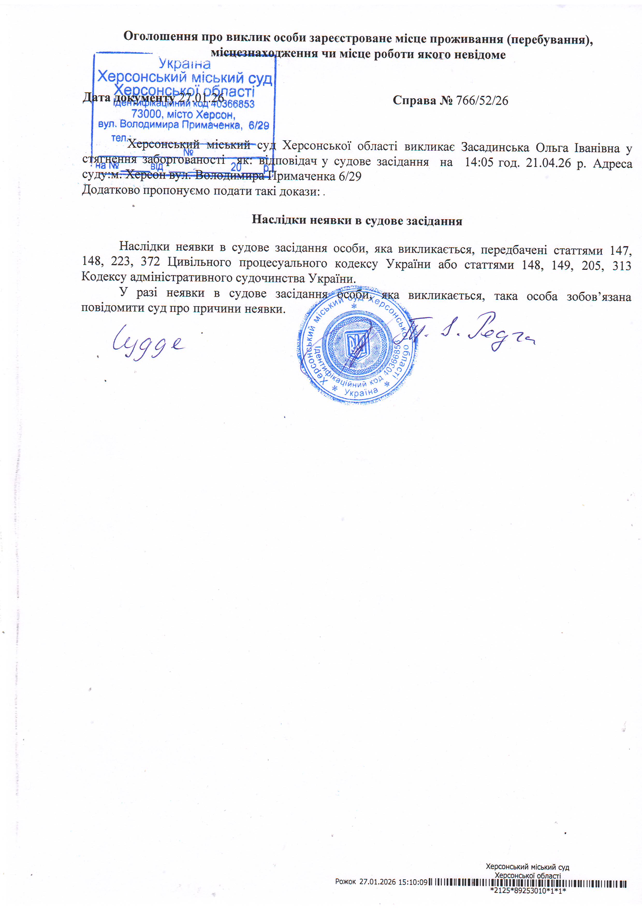 ОГОЛОШЕННЯ ПРО ВИКЛИК ДО СУДУ