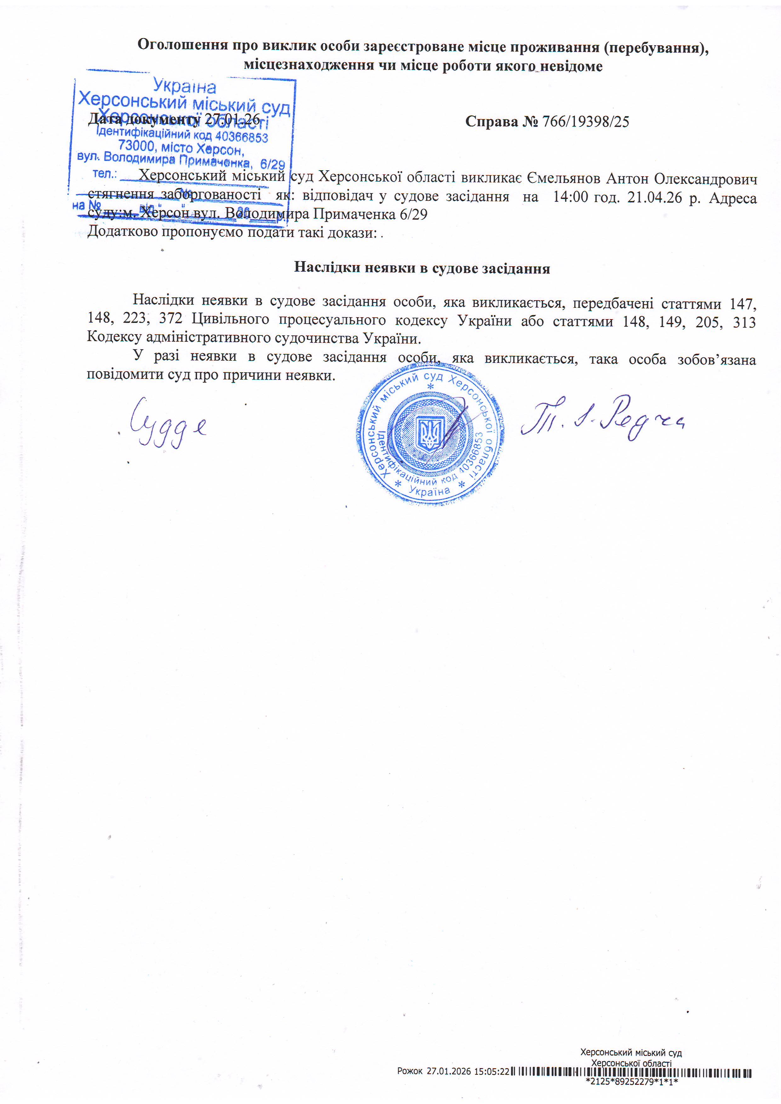 ОГОЛОШЕННЯ ПРО ВИКЛИК ДО СУДУ