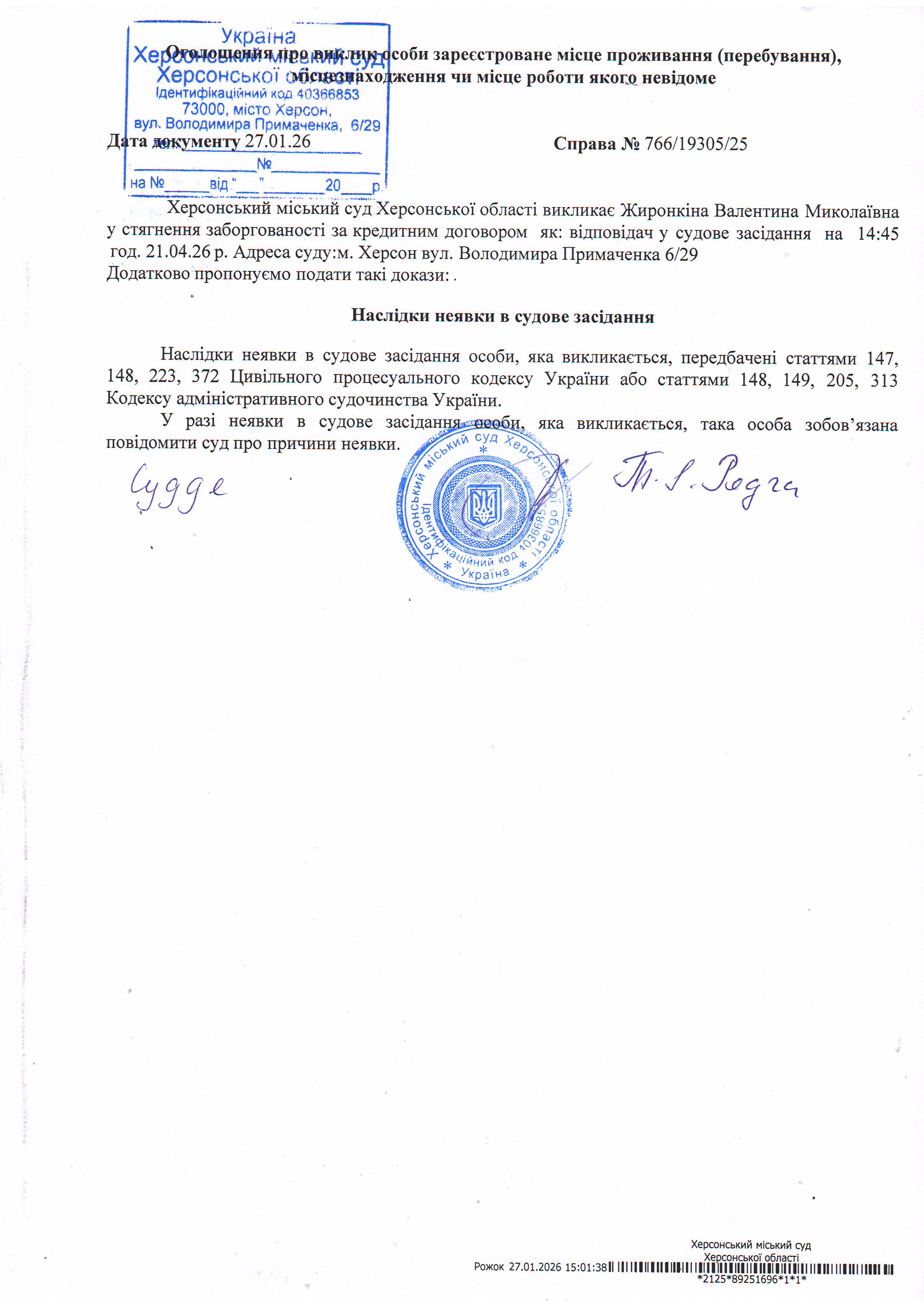 ПОВІДОМЛЕННЯ ПРО РОЗГЛЯД СПРАВИ БЕЗ ВИКЛИКУ СТОРІН