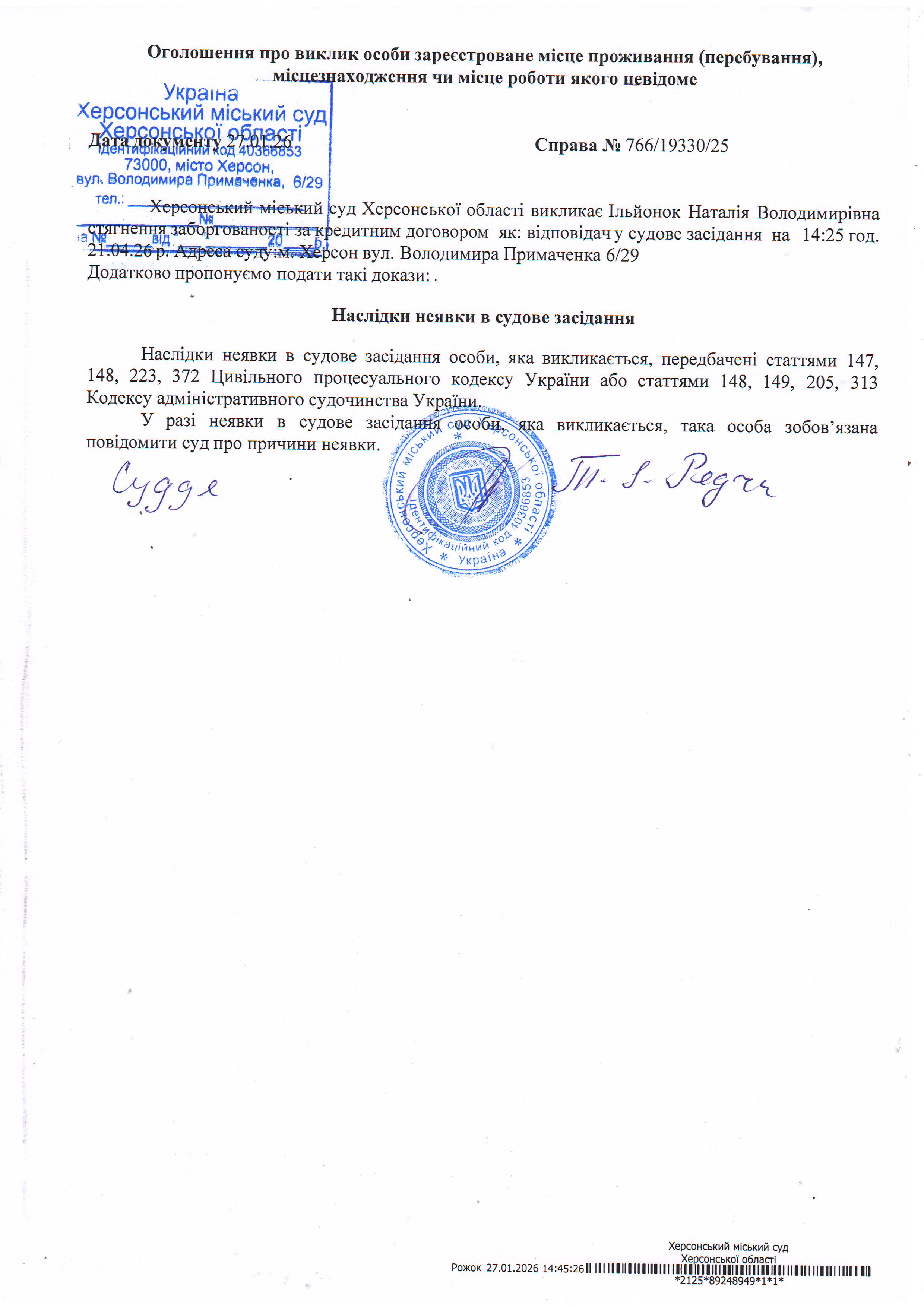 ОГОЛОШЕННЯ ПРО ВИКЛИК ДО СУДУ
