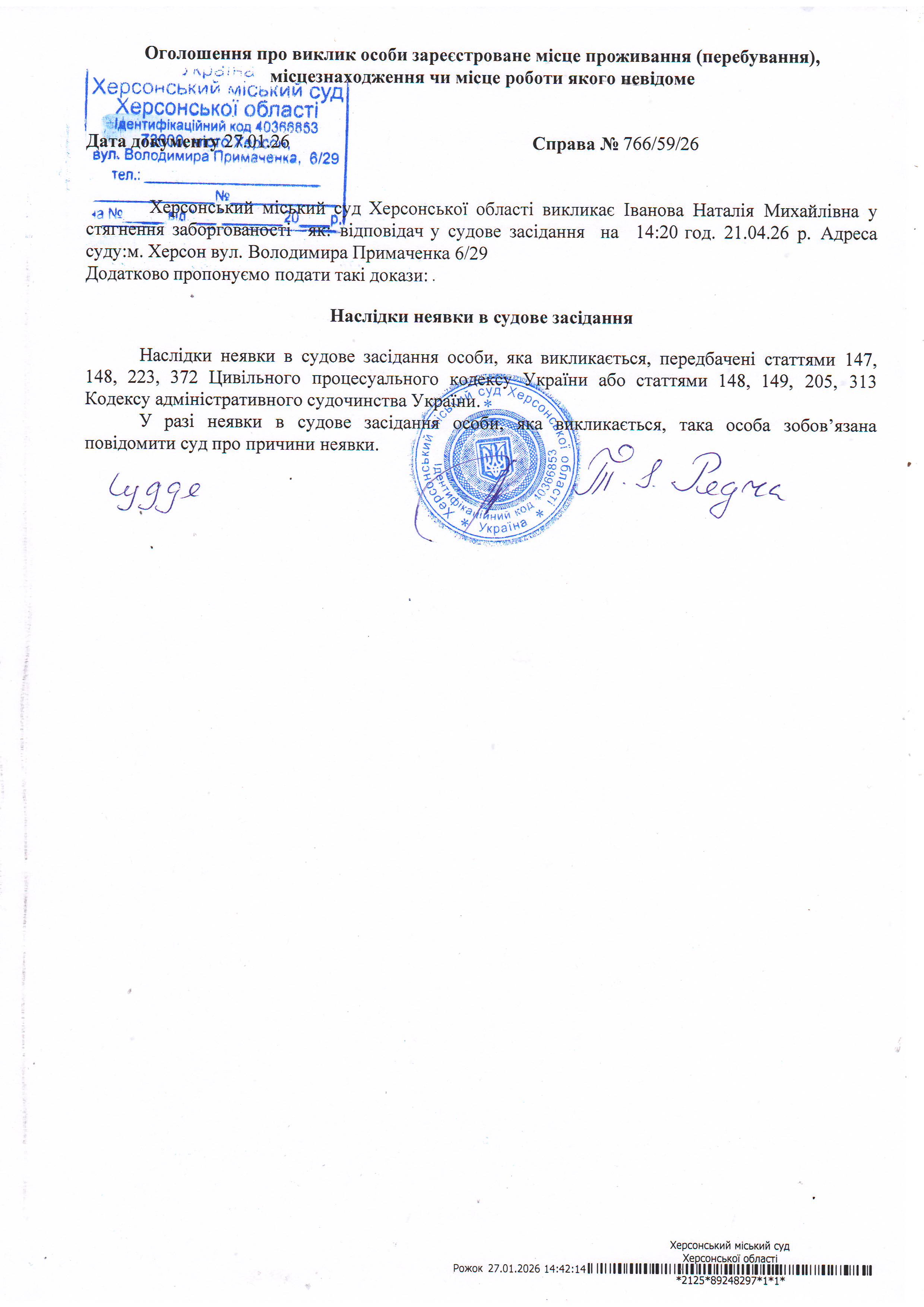 ОГОЛОШЕННЯ ПРО ВИКЛИК ДО СУДУ