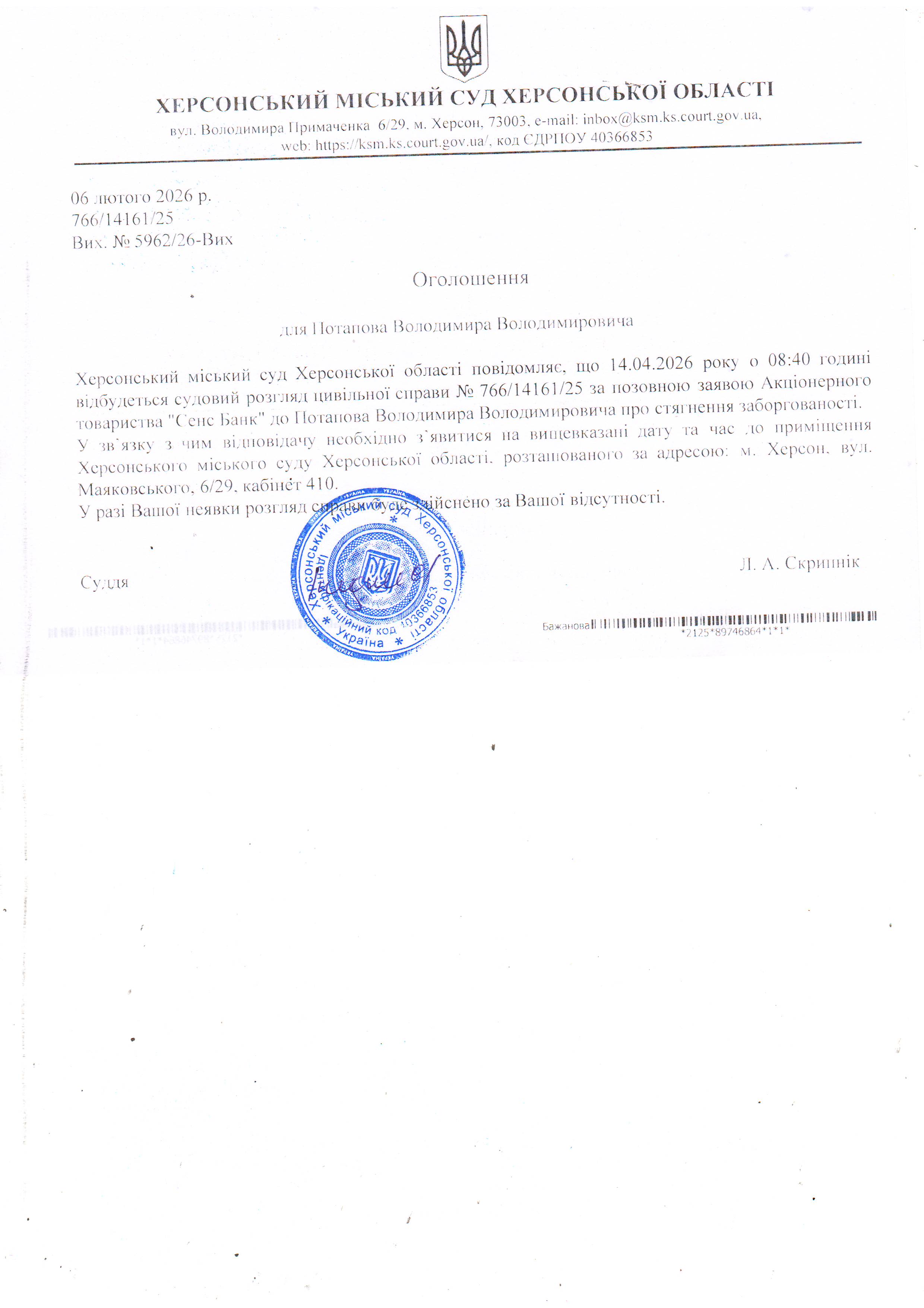 ОГОЛОШЕННЯ ПРО ВИКЛИК ДО СУДУ