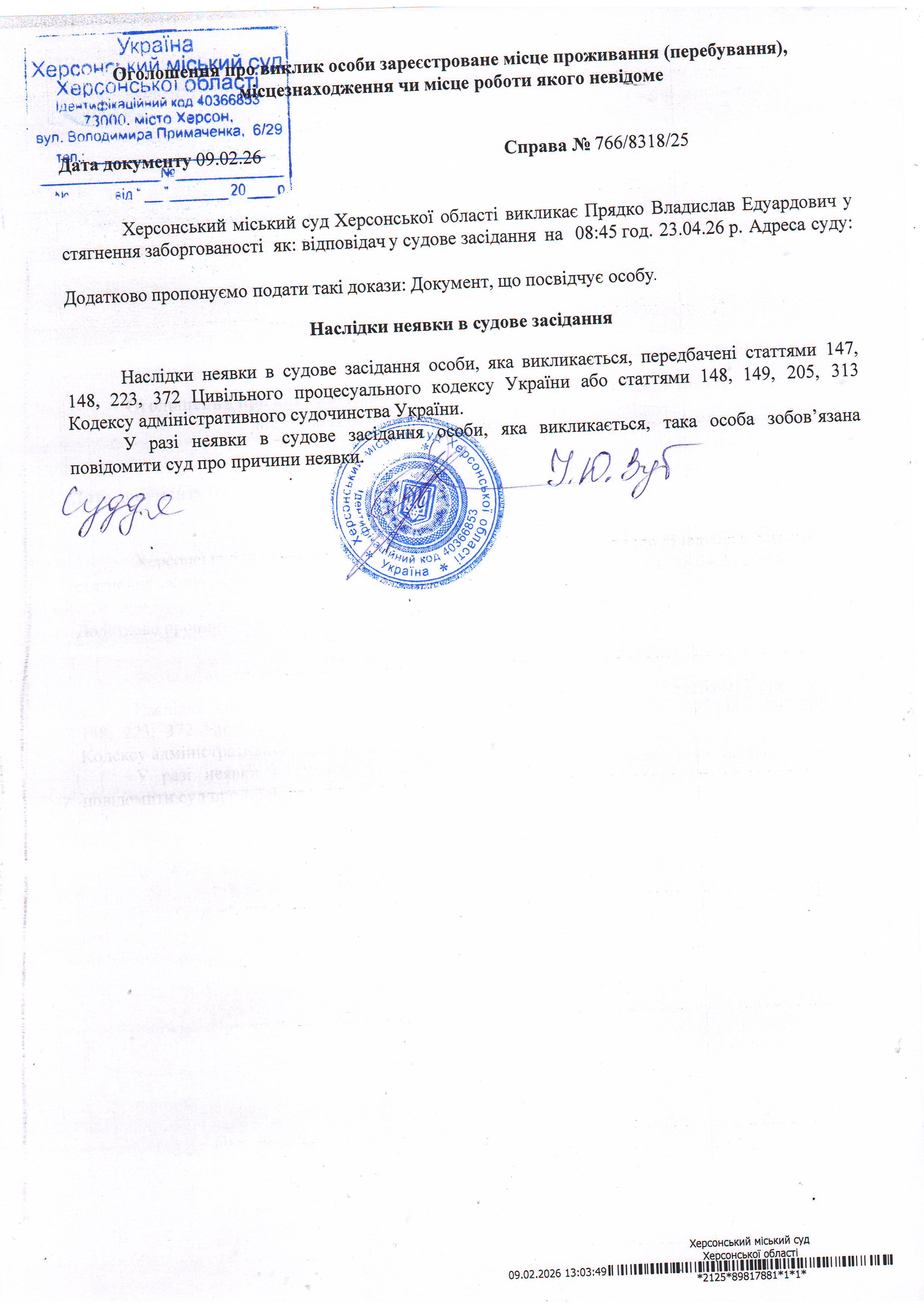 ОГОЛОШЕННЯ ПРО ВИКЛИК ДО СУДУ