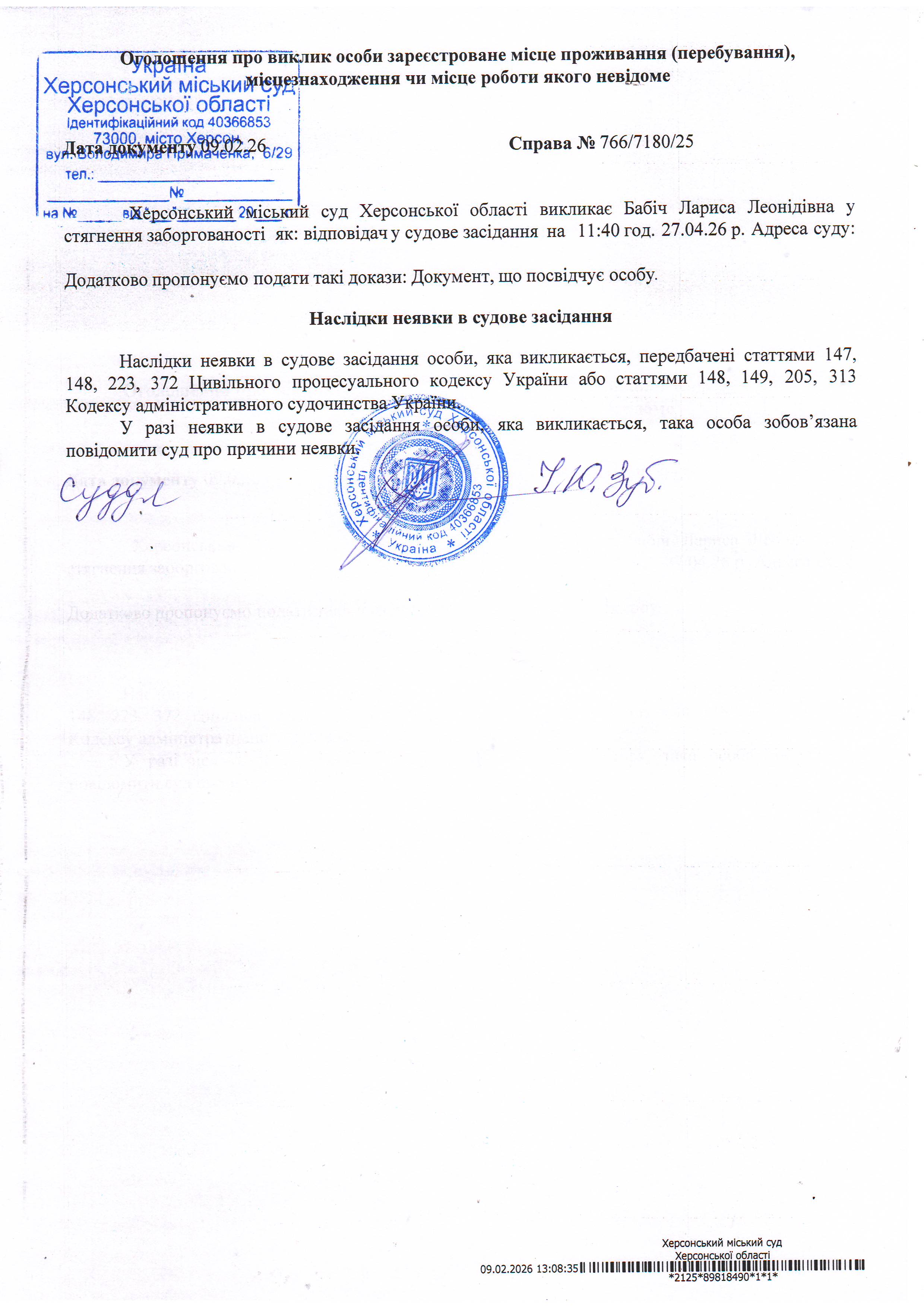 ОГОЛОШЕННЯ ПРО ВИКЛИК ДО СУДУ