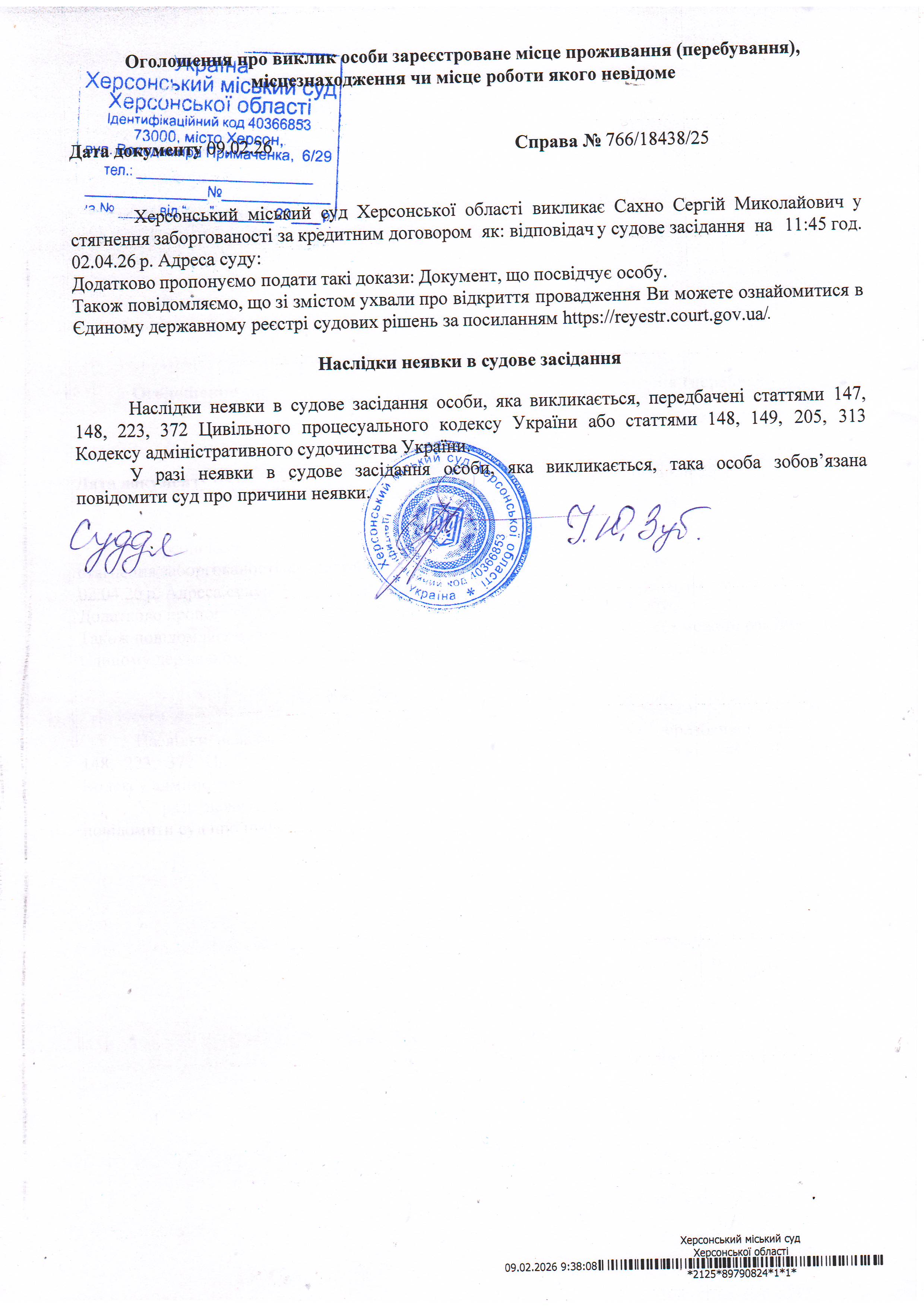 ОГОЛОШЕННЯ ПРО ВИКЛИК ДО СУДУ