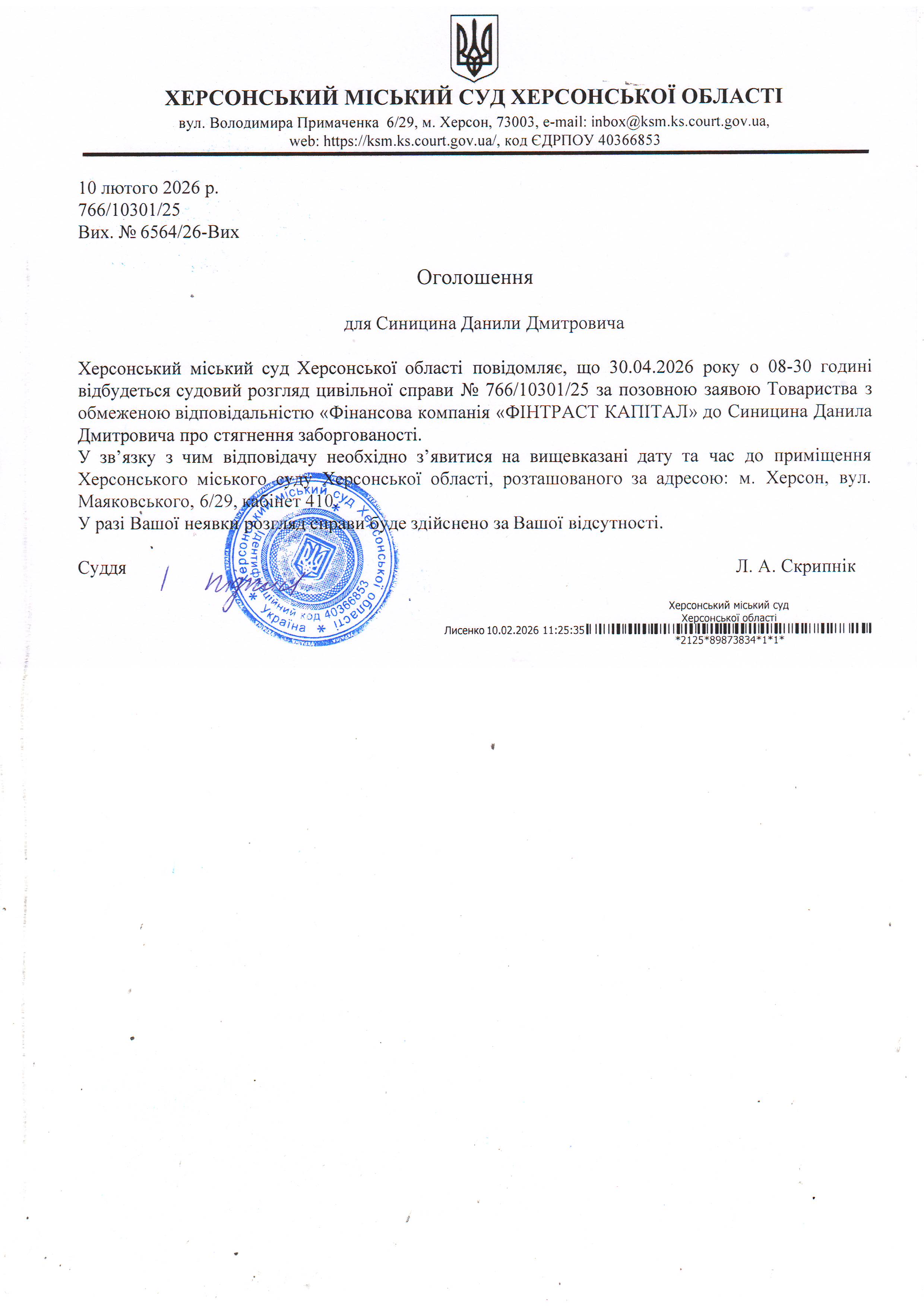 ОГОЛОШЕННЯ ПРО ВИКЛИК ДО СУДУ