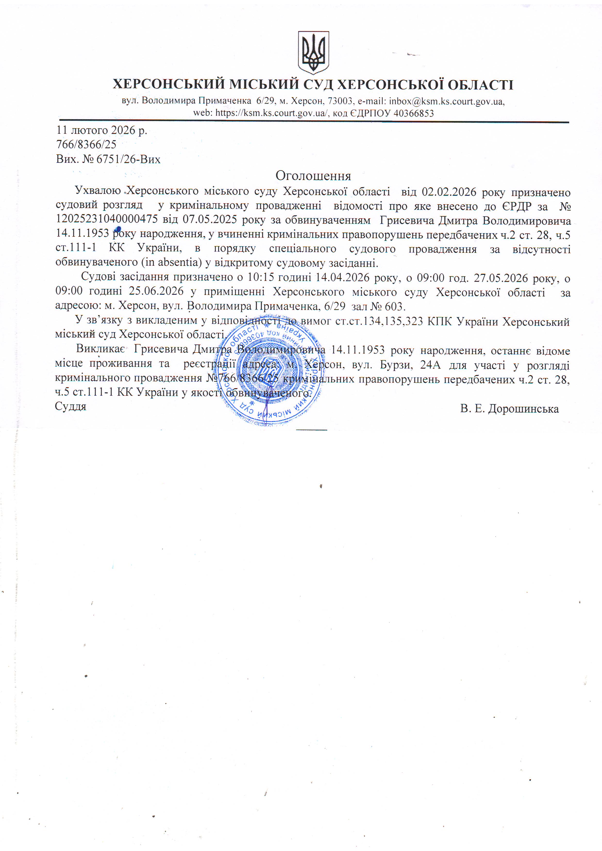 ОГОЛОШЕННЯ ПРО ВИКЛИК ДО СУДУ