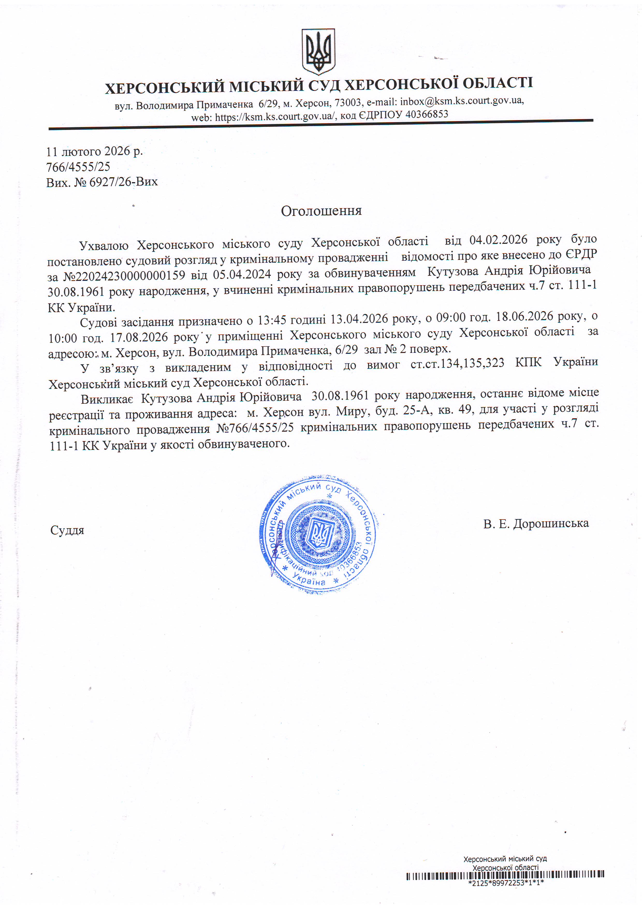 ОГОЛОШЕННЯ ПРО ВИКЛИК ДО СУДУ