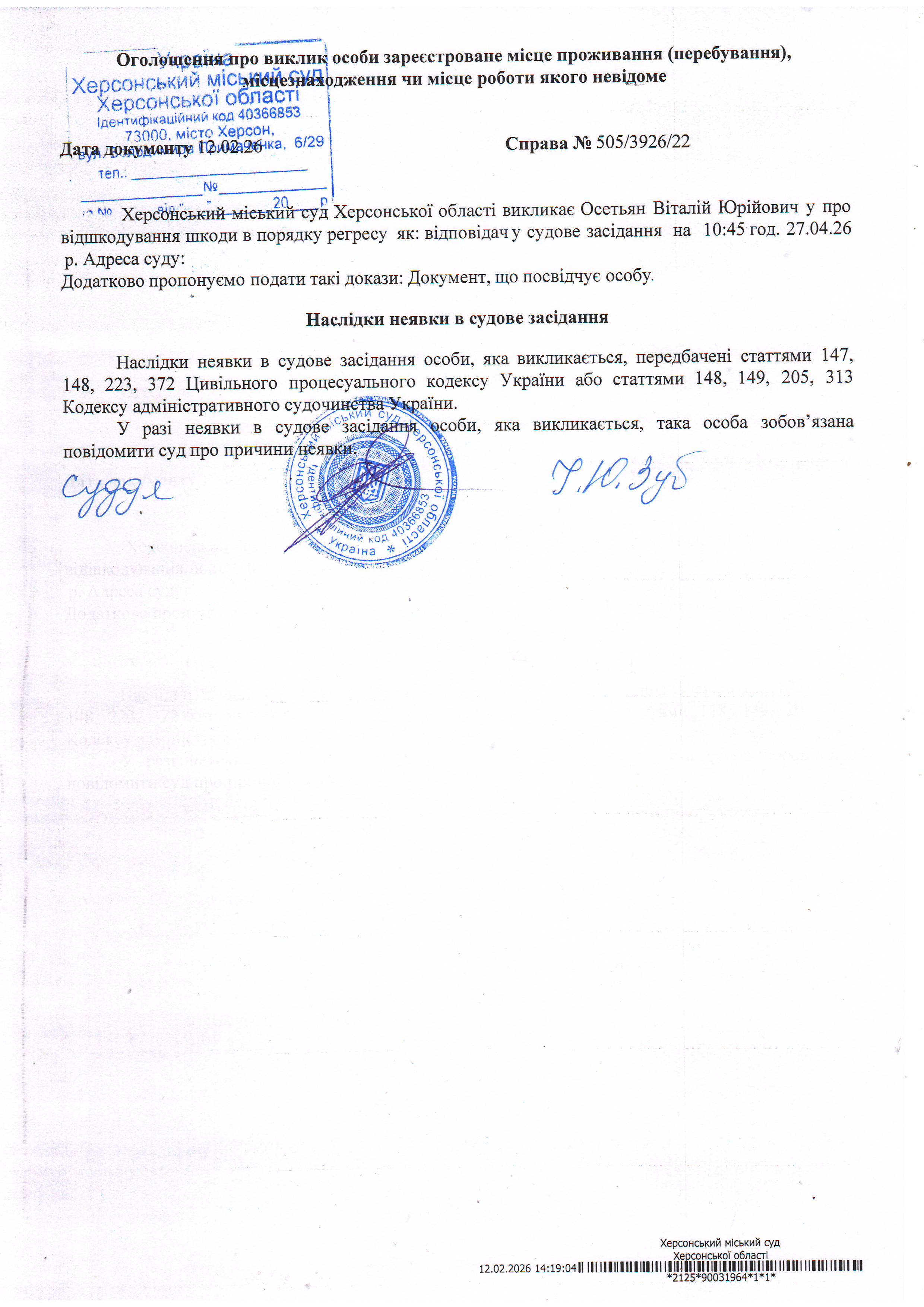 ОГОЛОШЕННЯ ПРО ВИКЛИК ДО СУДУ