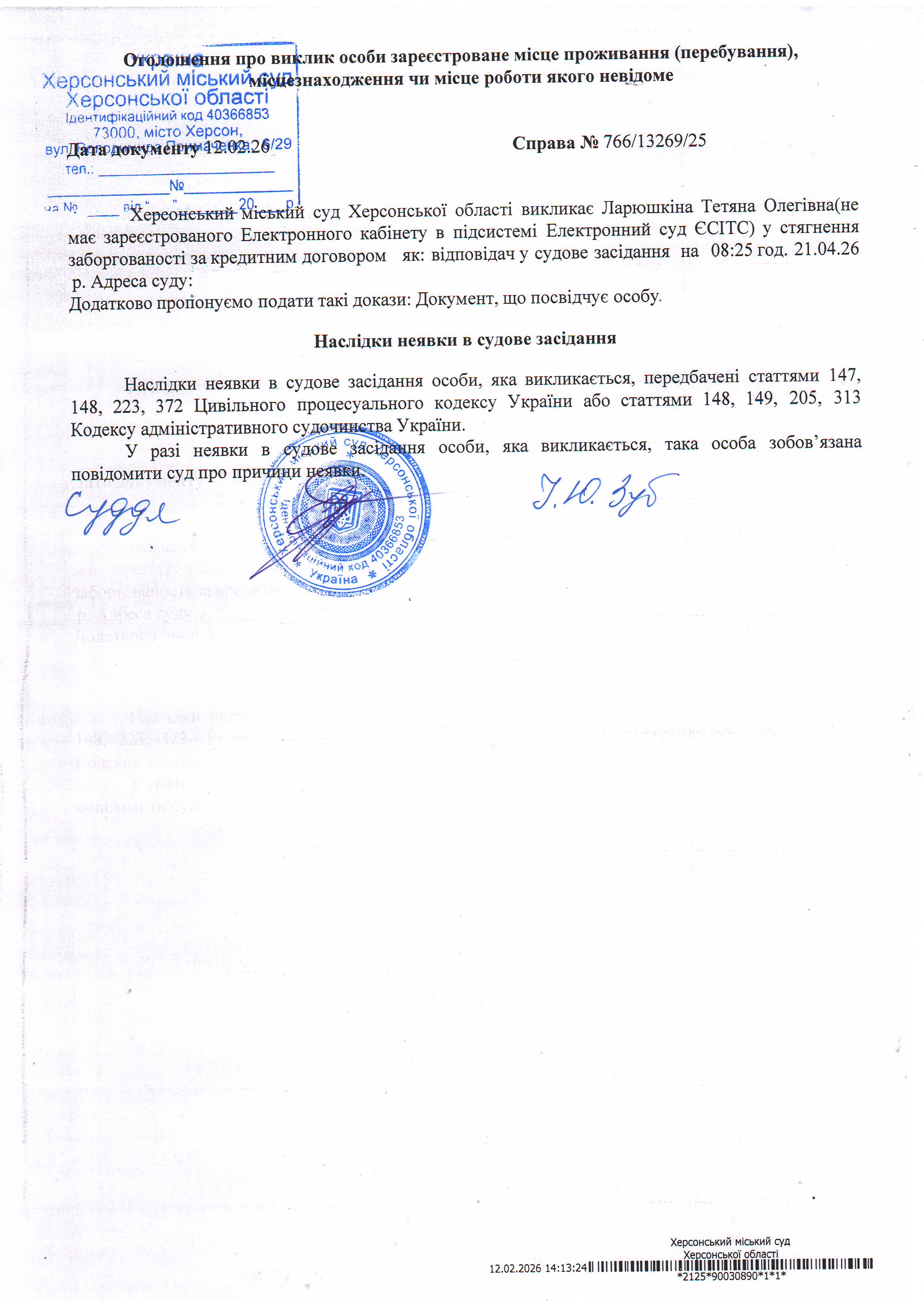 ОГОЛОШЕННЯ ПРО ВИКЛИК ДО СУДУ