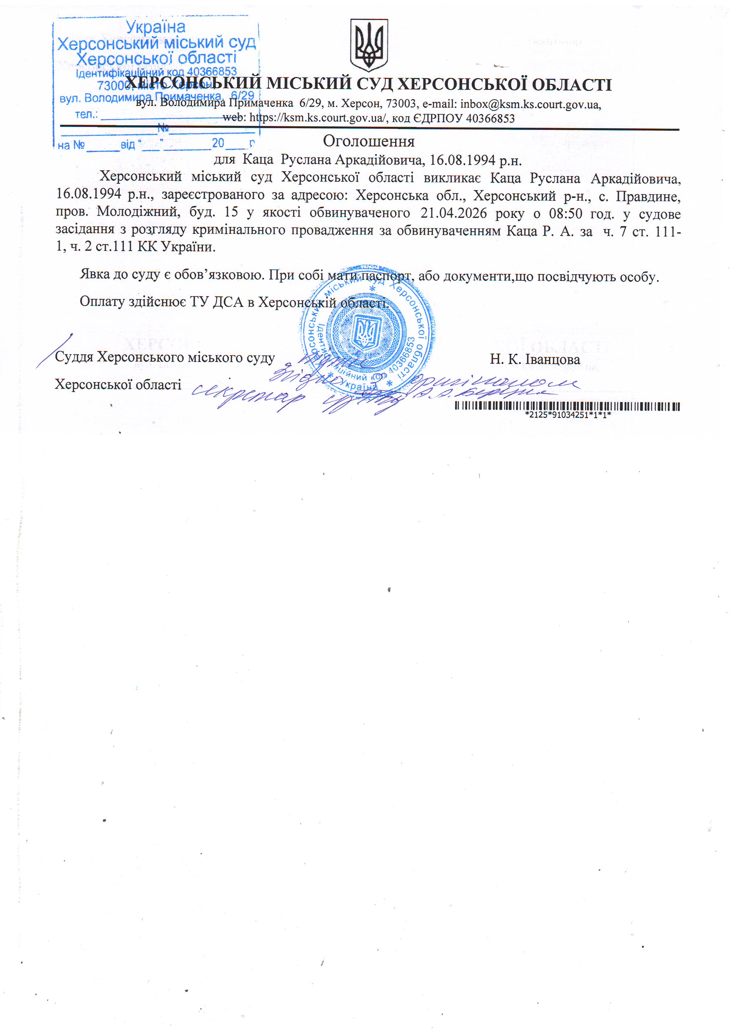 Херсонський міський суд Херсонської області