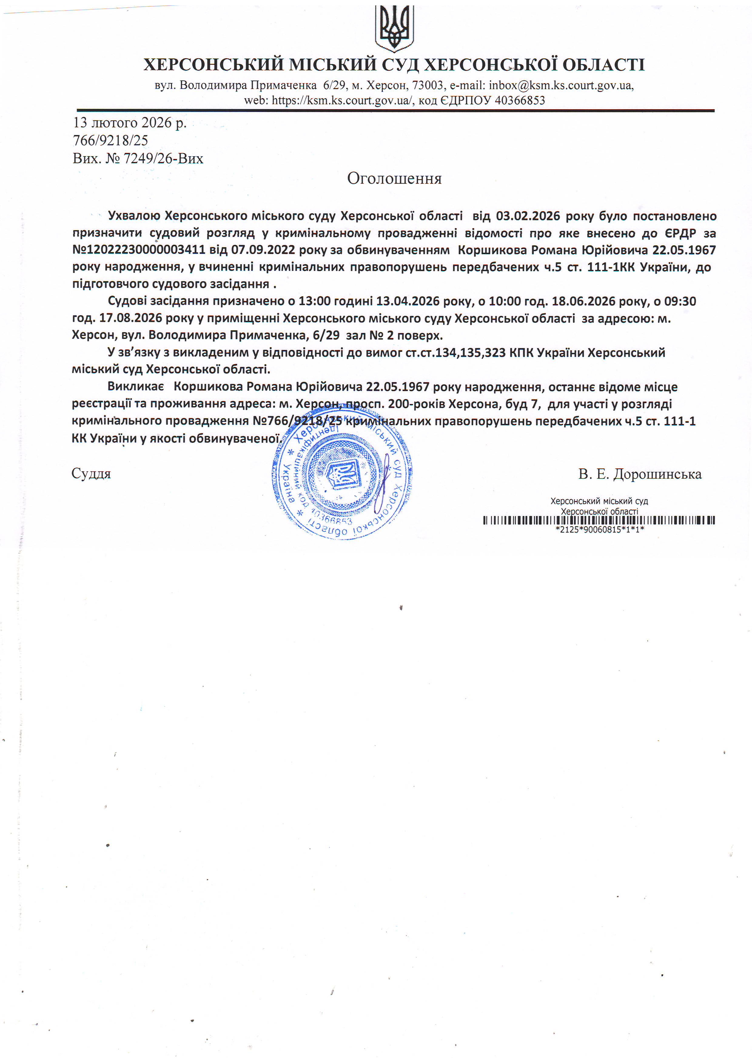 ОГОЛОШЕННЯ ПРО ВИКЛИК ДО СУДУ